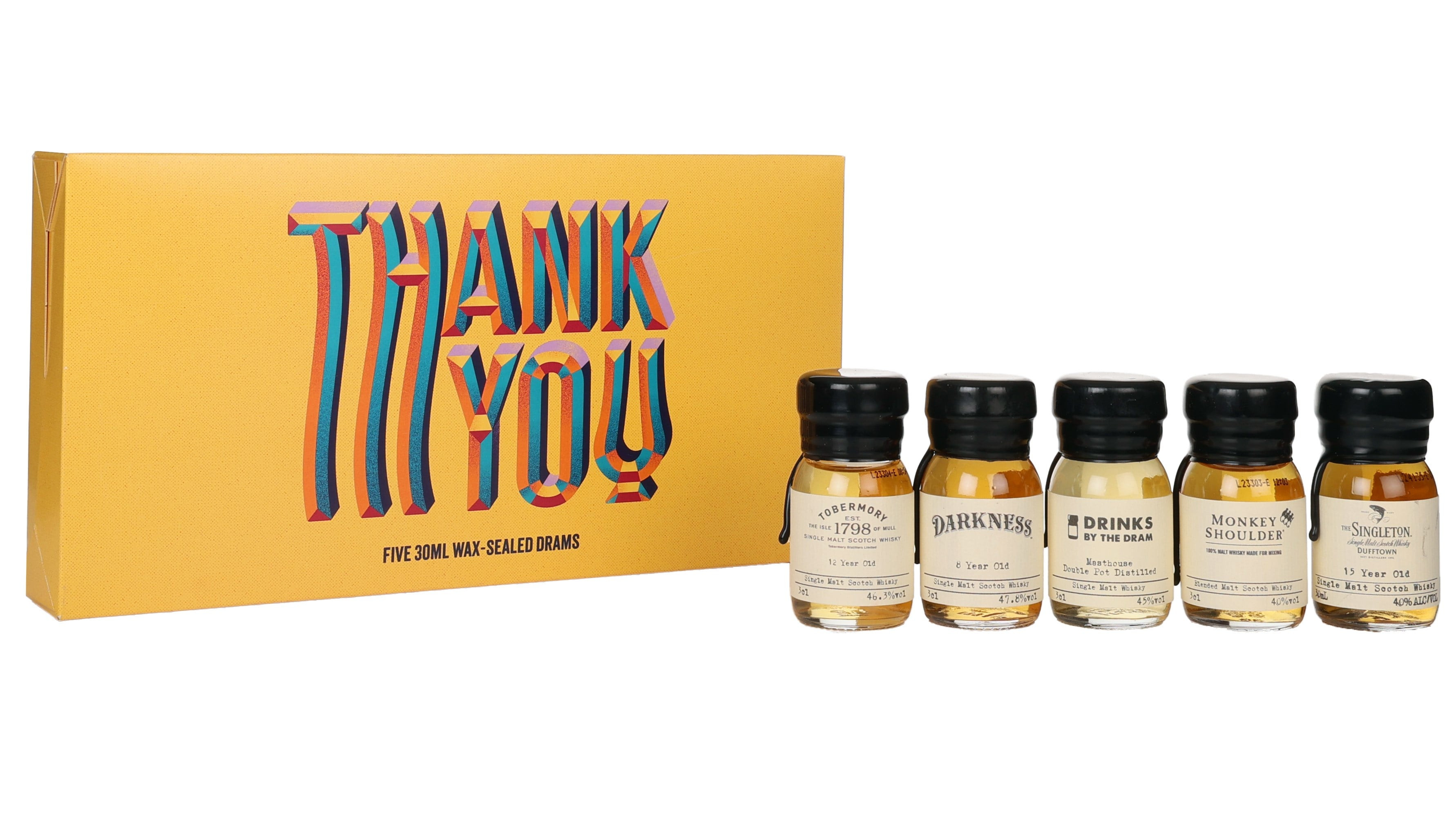 We all have people we need to thank sometimes, and in our opinion, whisky says it far better than words ever can! This tasting set includes five 30ml wax-sealed drams of specially chosen whisky that make up the perfect way to say a spiritful thank you to someone special, all housed in a cheerful yellow box. What better way to commend a job well done?