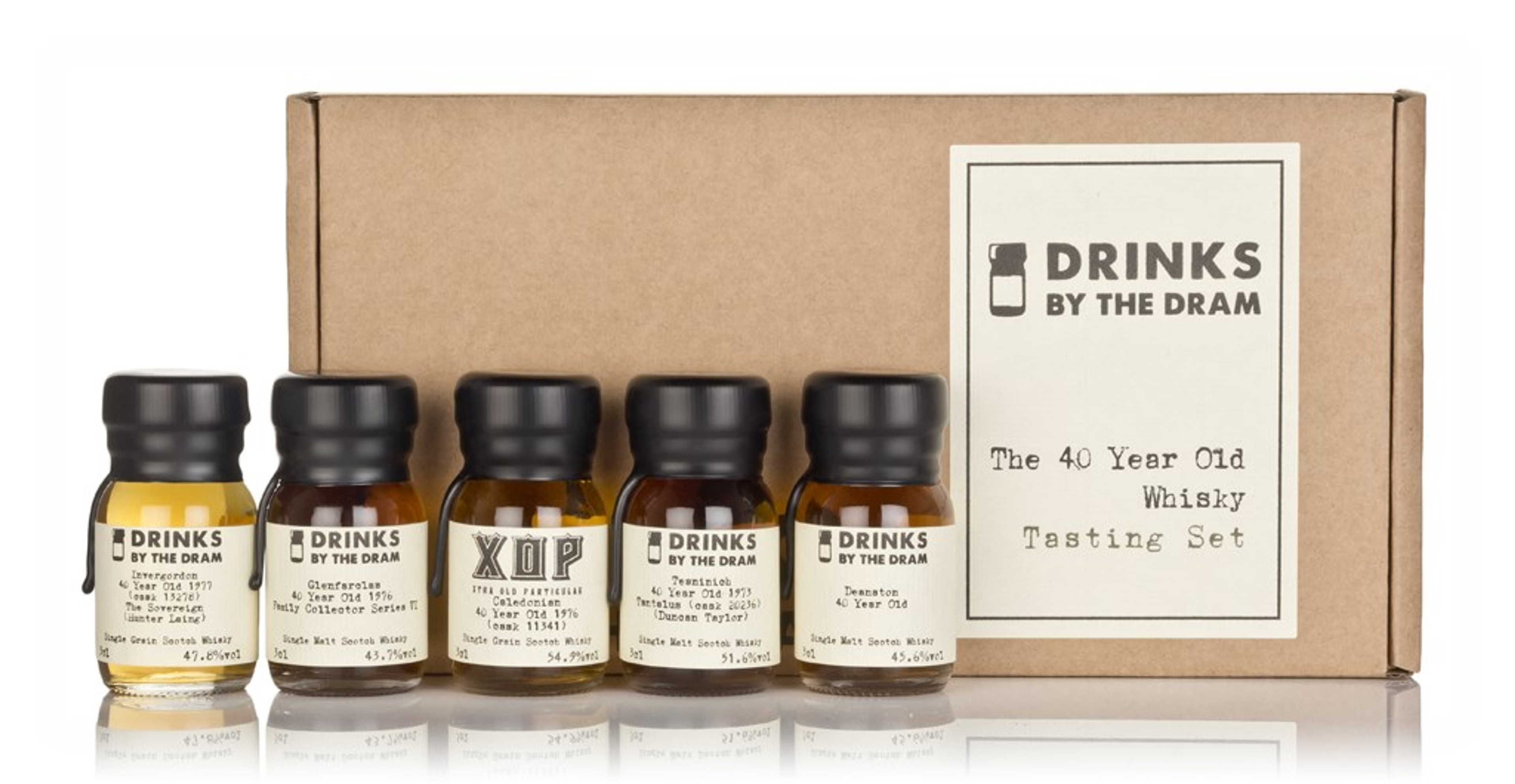 This Drinks by the Dram Tasting Set features five different drams of whisky from a selection of top producers aged for 40 years. Perfect for a birthday gift, or if you're looking to explore some incredibly well-matured expressions...