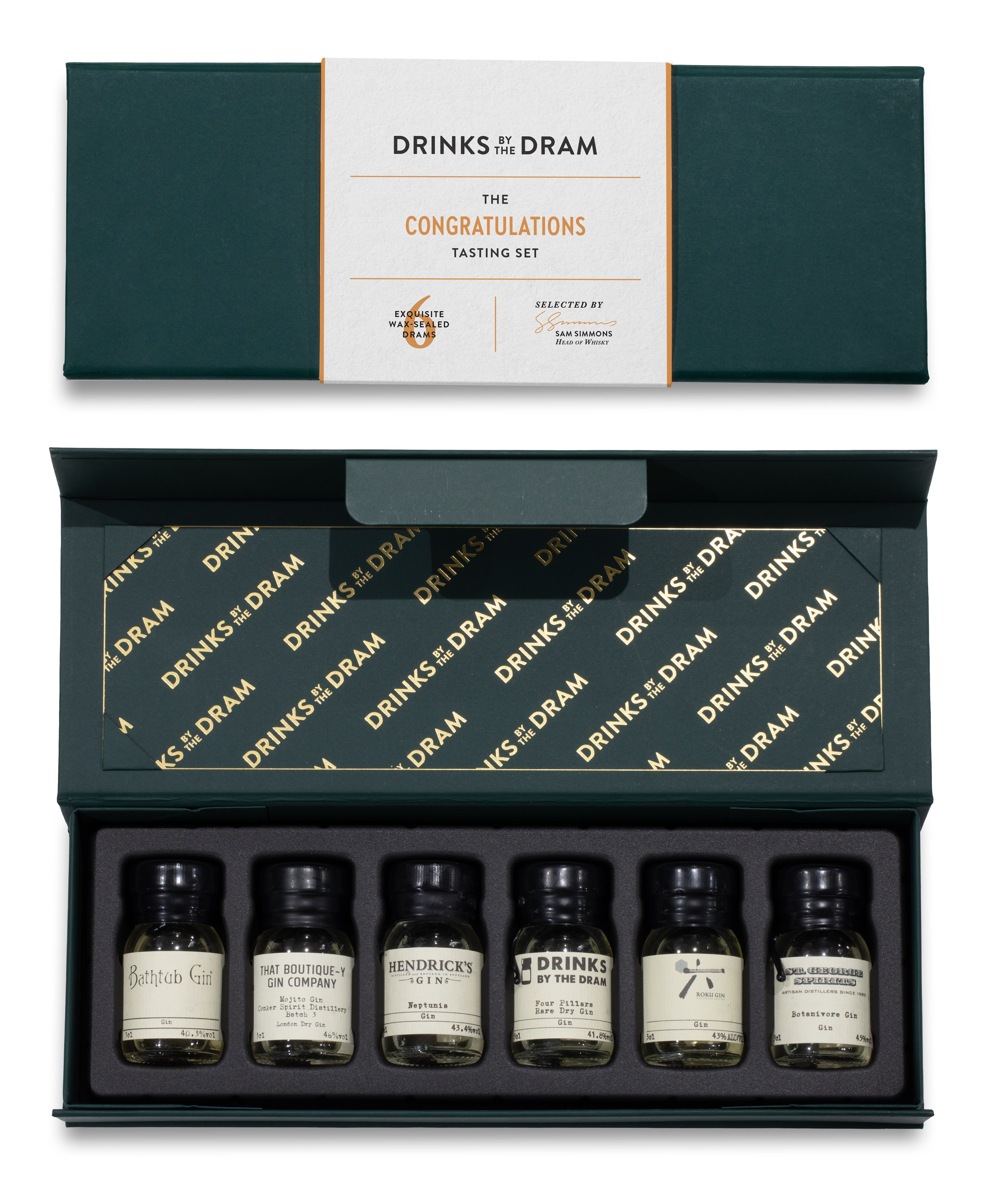 What is the best way to congratulate someone on a special day or commend them on an impressive achievement? This marvellous gin tasting set will show it's meant from the heart. Within this box await six wax-sealed 30ml gin samples from some of the world's top distilleries and producers – ready for a celebratory tasting journey!