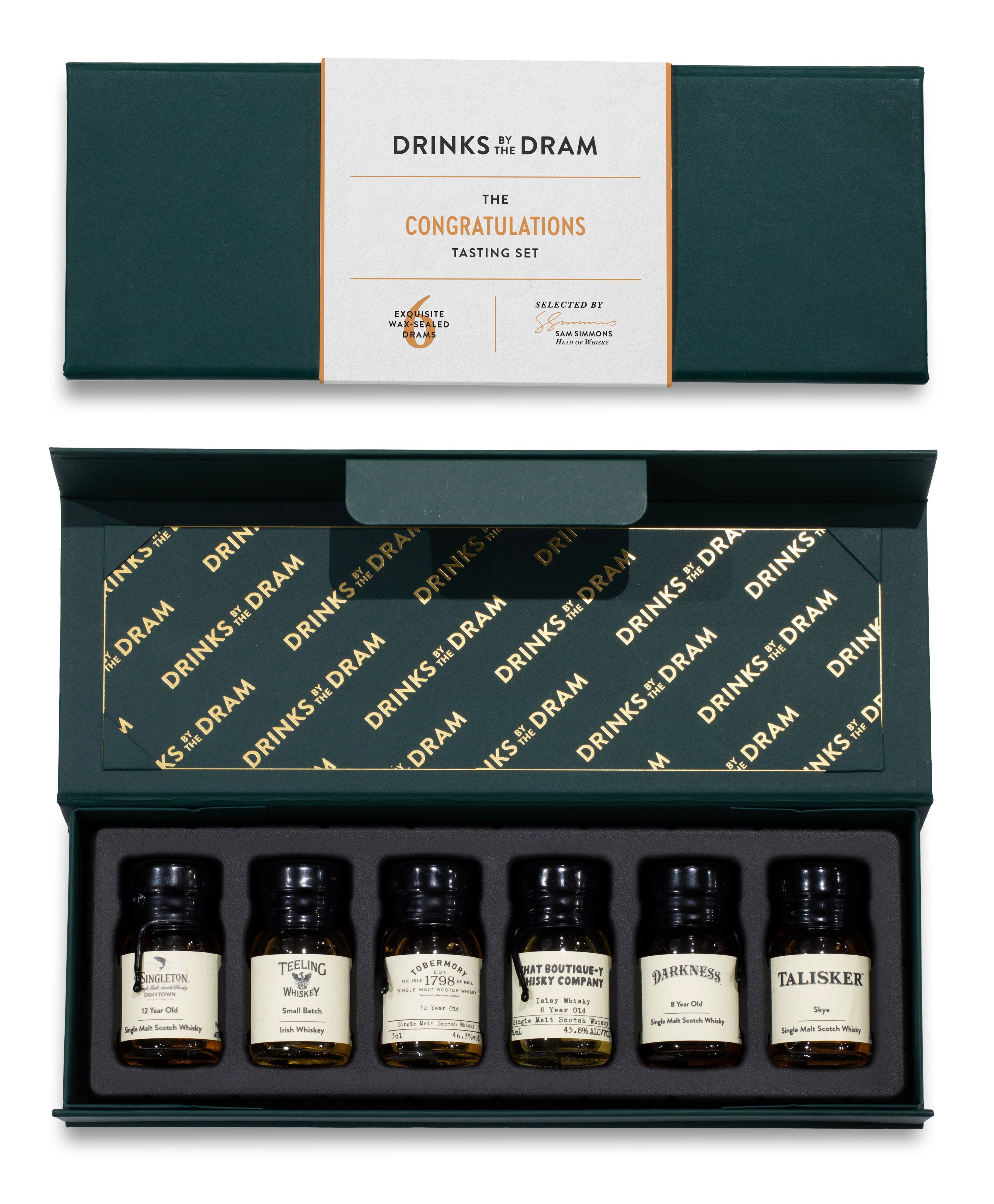 What is the best way to congratulate someone on a special day or commend them on an impressive achievement? This marvellous whisky tasting set will show it's meant from the heart. Within this box await six wax-sealed 30ml whisky samples from some of the world's top distilleries and producers – ready for a celebratory tasting journey!