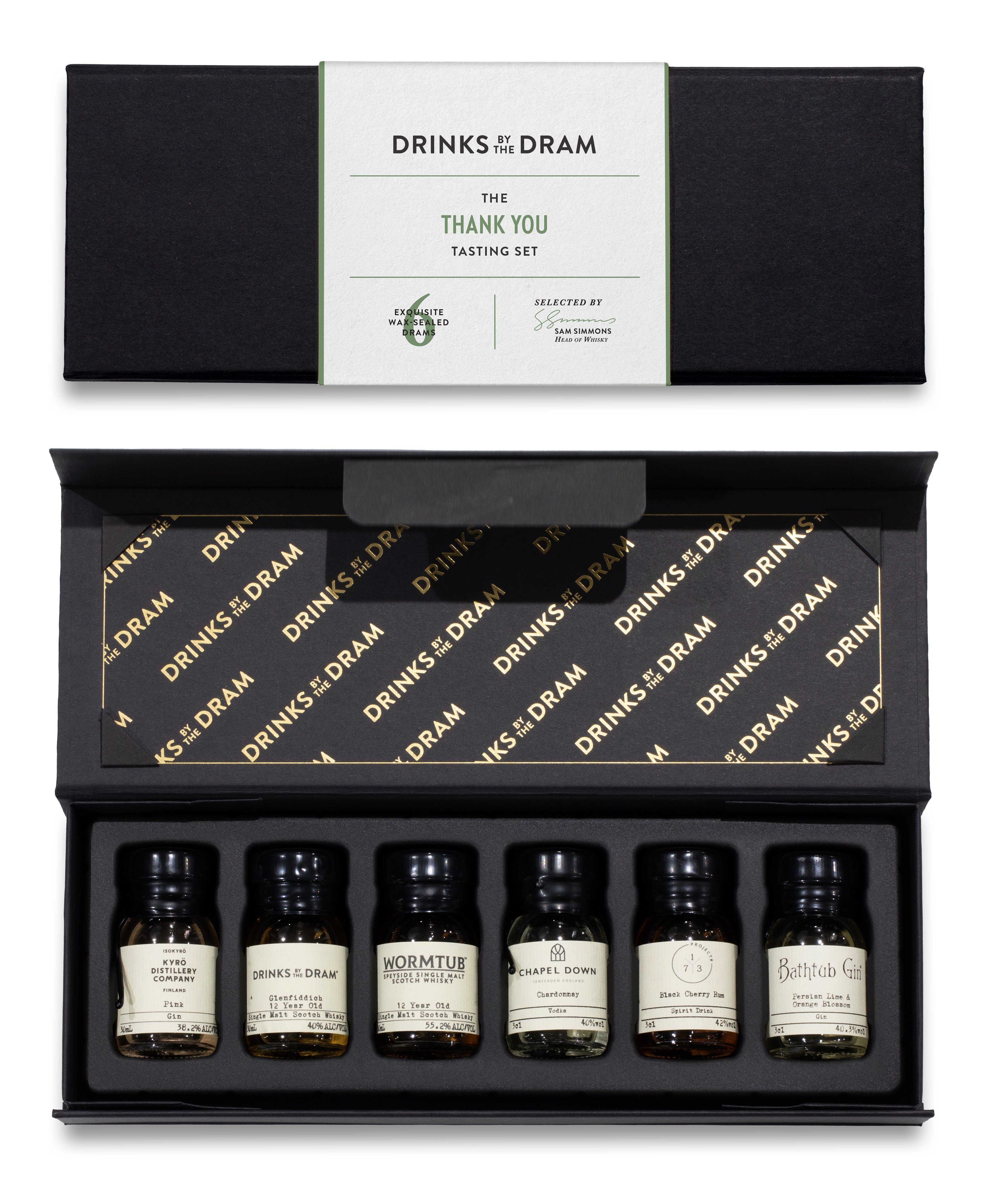 People say "thank you" for things all the time, but in our book, it means nothing without a follow-up of tasty spirits! Within this box await six wax-sealed 30ml mixed spirit samples from some of the world's top distilleries and producers – a memorable treat, and a great way to show your gratitude in a way that words just can't.