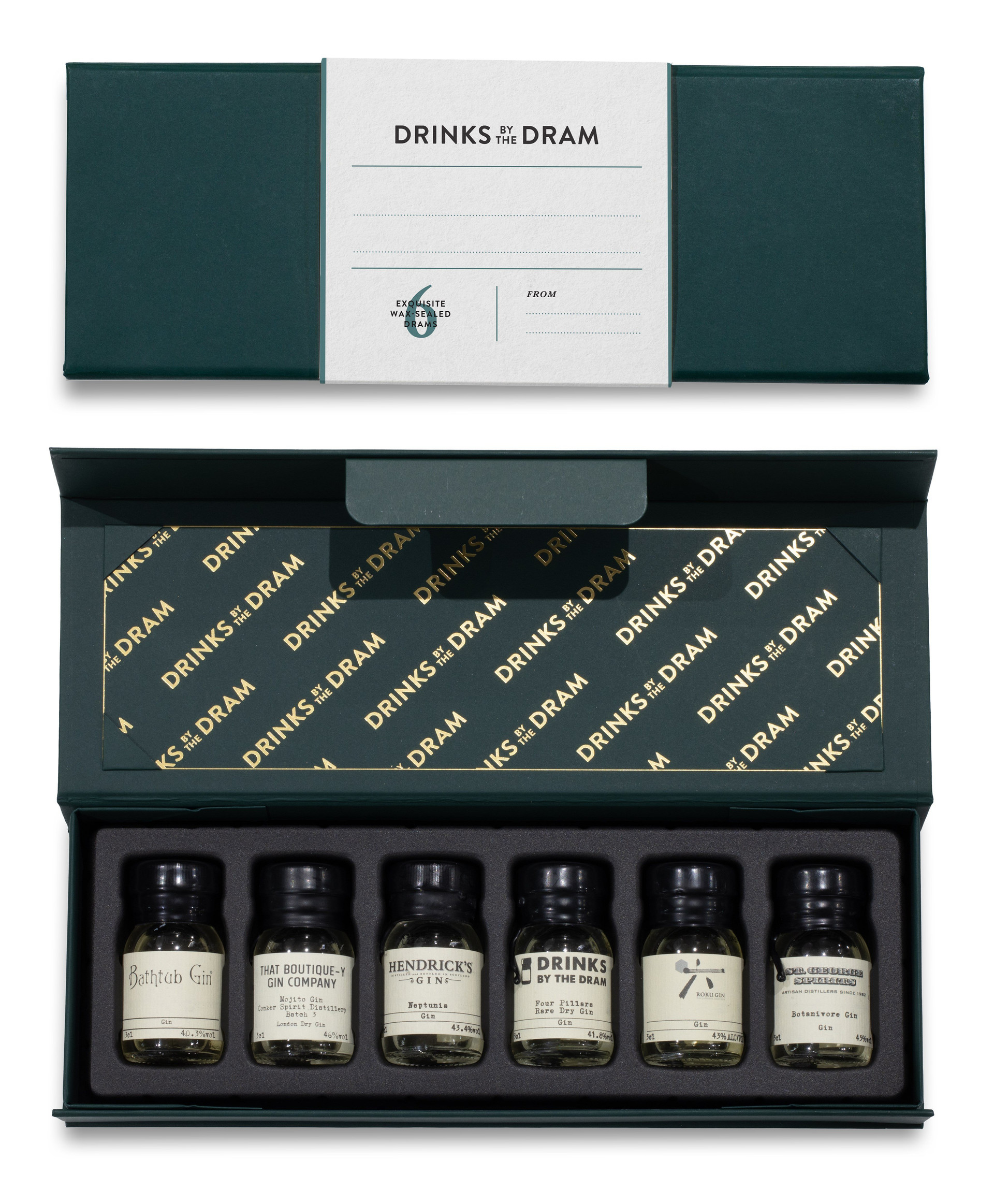 Within this box await six wax-sealed 30ml gin samples from some of the world's top distilleries and producers, and you can transform it into the perfect personalised gift by adding your own message to the sleeve! There's enough space to write a nice greeting, or perhaps a poem. Include a doodle if you like. It's a blank canvas.