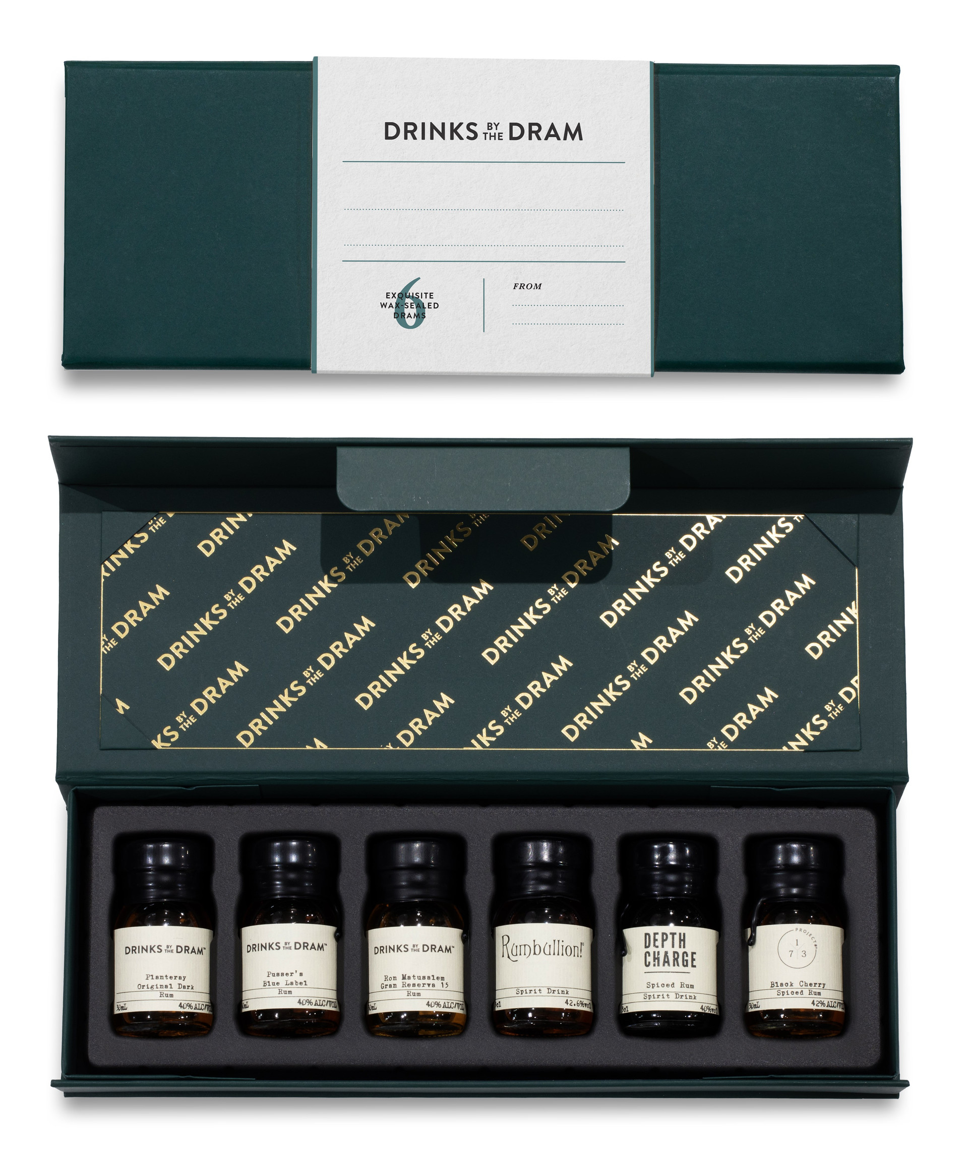 Within this box await six wax-sealed 30ml rum samples from some of the world's top distilleries and producers, and you can transform it into the perfect personalised gift by adding your own message to the sleeve! There's enough space to write a nice greeting, or perhaps a poem. Include a doodle if you like. It's a blank canvas.