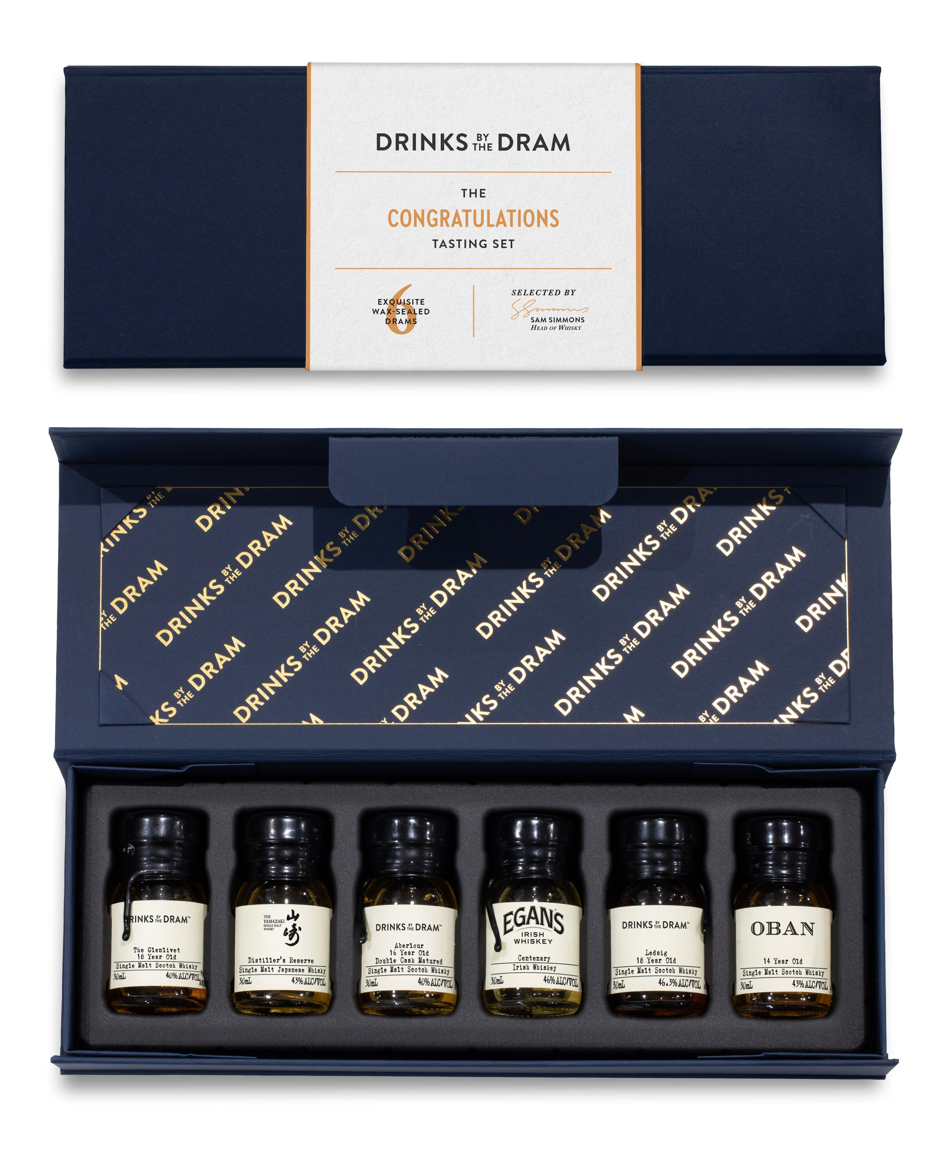 What is the best way to congratulate someone on a special day or commend them on an impressive achievement? This marvellous premium whisky tasting set will show it's meant from the heart. Within this box await six wax-sealed 30ml whisky samples from some of the world's top distilleries and producers – ready for a celebratory tasting journey!