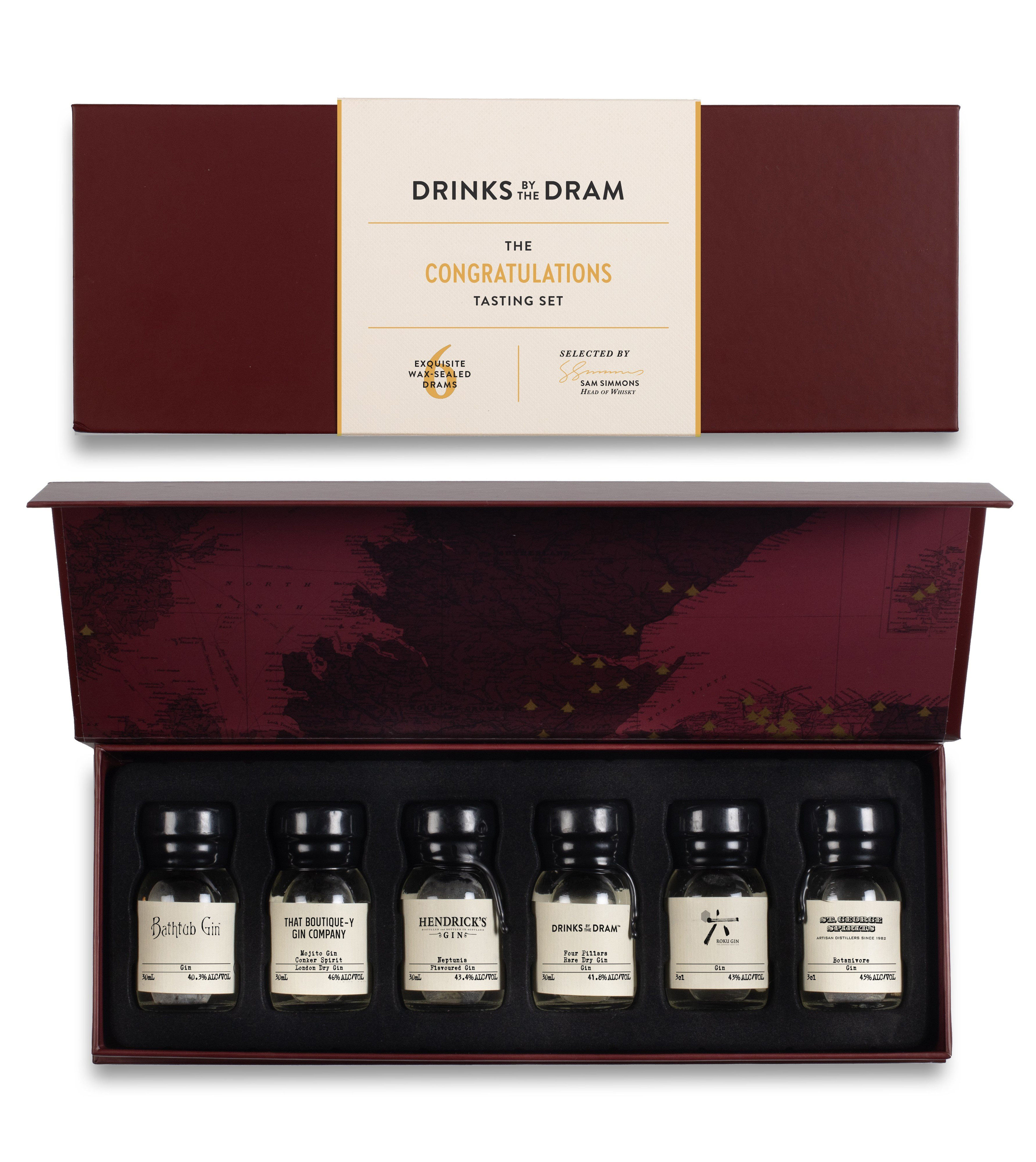 What is the best way to congratulate someone on a special day or commend them on an impressive achievement? This marvellous gin tasting set will show it's meant from the heart. Within this box await six wax-sealed 30ml gin samples from some of the world's top distilleries and producers – ready for a celebratory tasting journey!