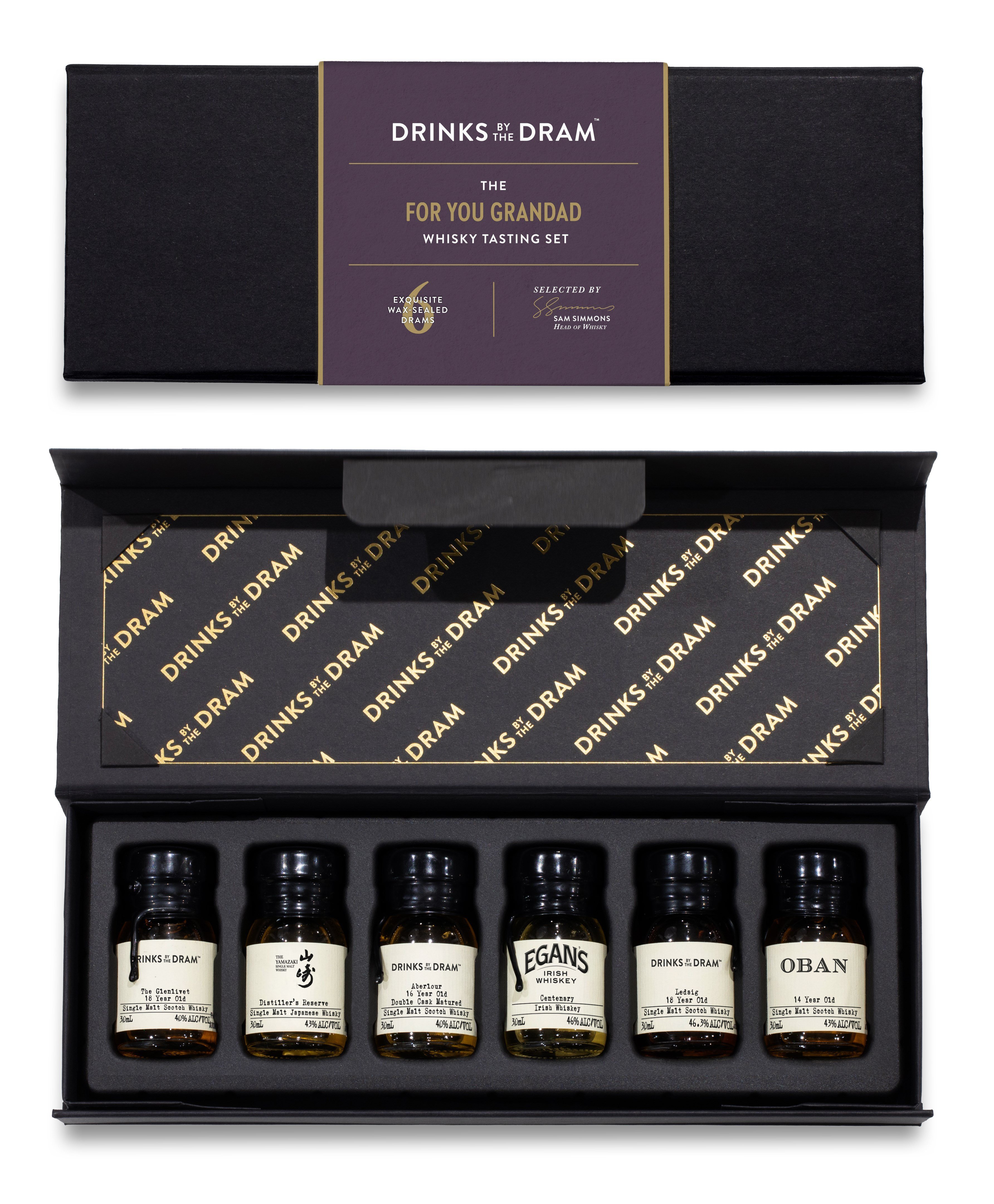 Within this box await six wax-sealed 30ml premium whisky samples from some of the world's top distilleries and producers – a memorable treat for even the wisest of whisky-loving grandads.