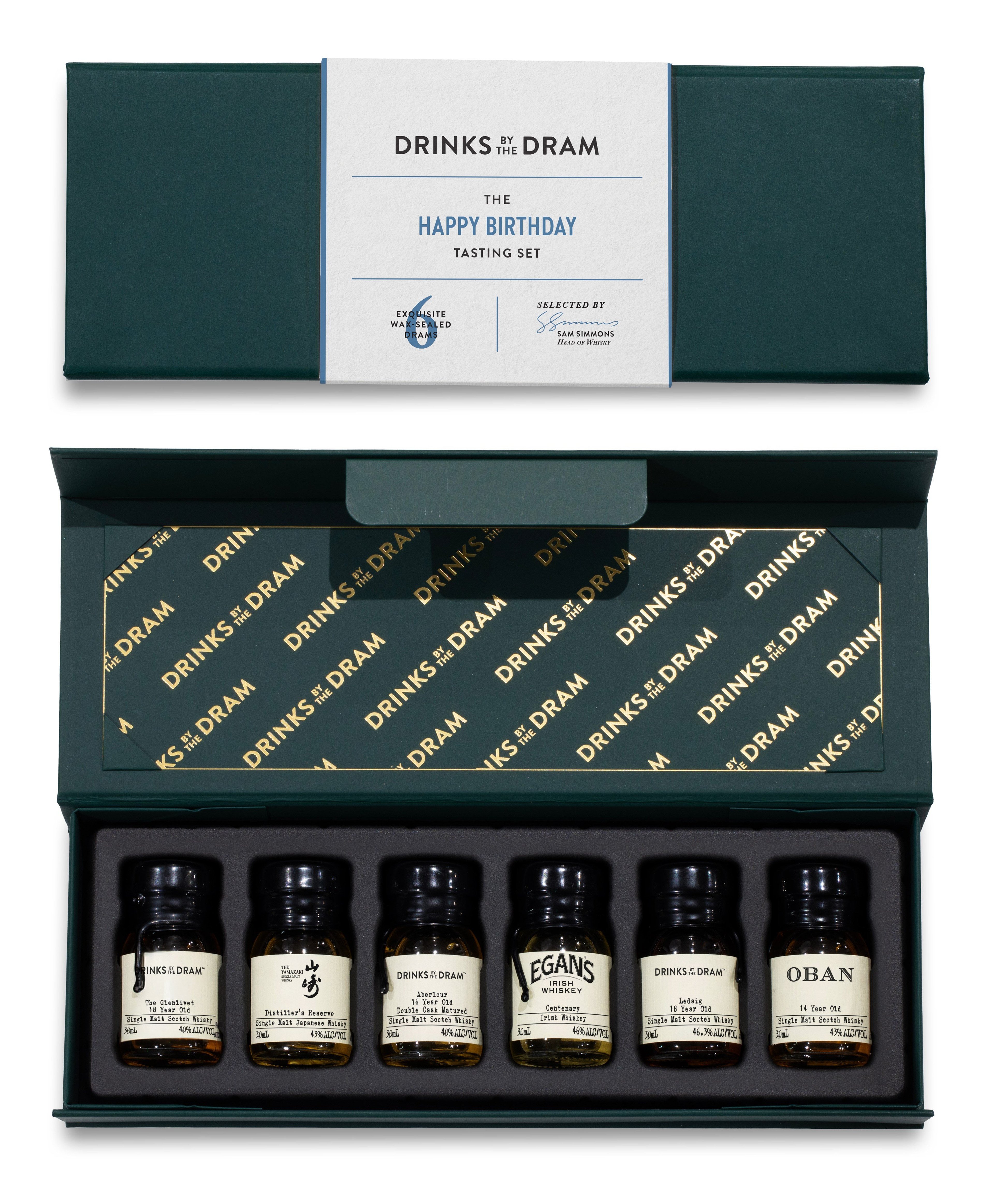Spoil someone special on their birthday with this splendid premium whisky tasting set! Within this box await six wax-sealed 30ml whisky samples from some of the world's top distilleries and producers – so they'll be filled with cheer (and whisky) on their big day.