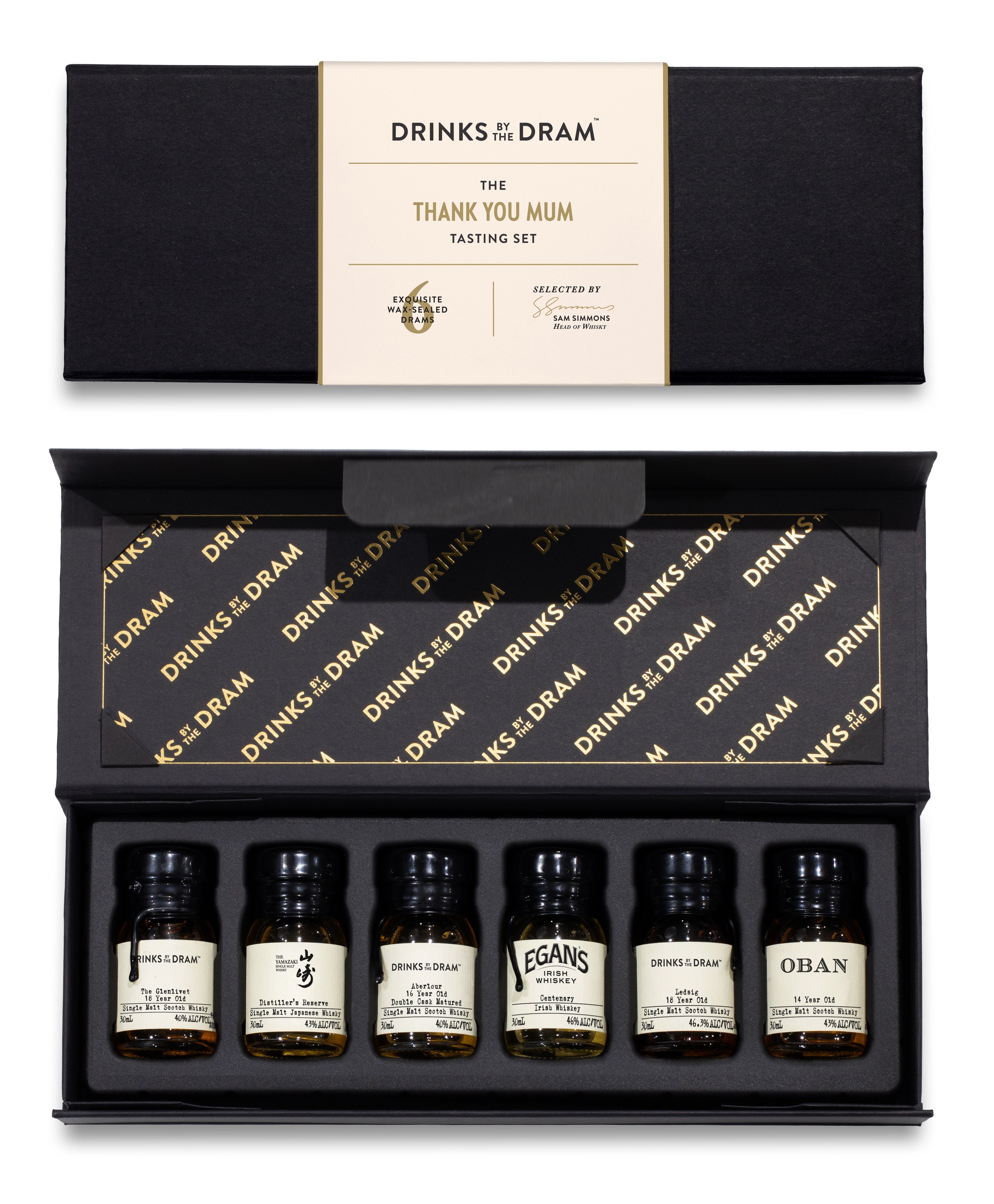 A selection of six premium whisky tasters, chosen to ensure any day for a Mother is filled with delight! This collection includes six 30ml wax-sealed samples from some of the world's most impressive producers.