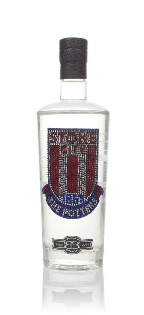 Football and vodka have joined forces thanks to Bohemian Brands! This here is a bottle of five times distilled vodka bottled up and decorated with the Stoke City FC logo. Fun facts - the Stoke football team is colloquially known at The Potters. Nothing to do with any magician families.