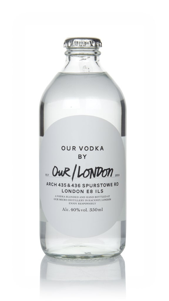 A 35cl bottle of wheat-based vodka from Our/London, produced in a micro-distillery Hackney Downs. Our/London is one of a number of distilleries in cities around the world producing Our/Vodka - others include Detroit, Amsterdam and Berlin.