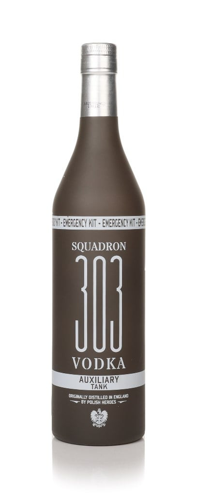 The Squadron 303 RAF was a Polish squadron that fought during the Second World War and today they're honored with these bottles of vodka. This edition references the practice of fixing a special type of auxiliary drop tank to the Spitfire's fuselage which contained beer, brandy, or vodka destined for other RAF bases.