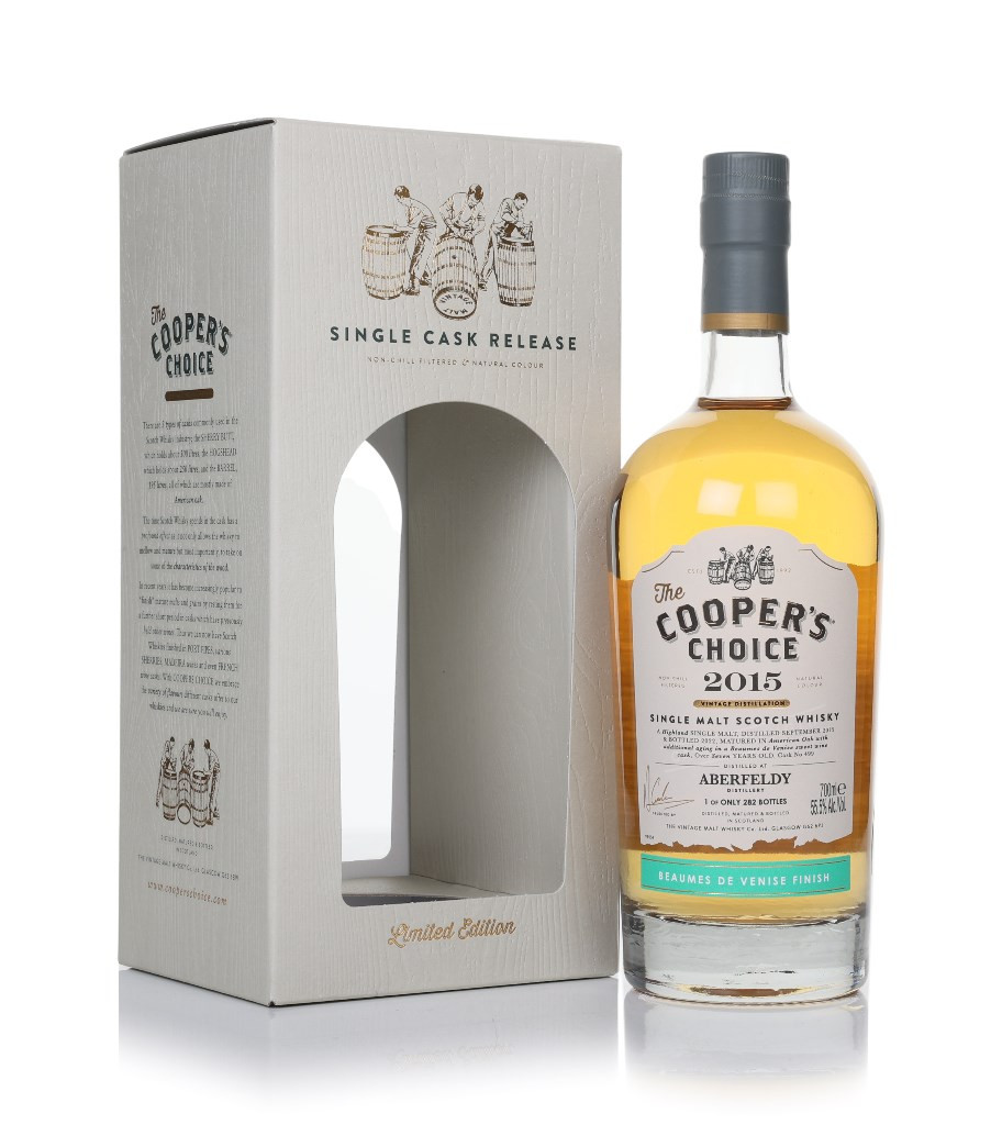 Distilled in September 2015, this single cask, single malt from Aberfeldy matured for over seven years. Spending time in American oak before moving to a Beaumes de Venise sweet wine cask, it was bottled by The Vintage Malt Whisky Co. for The Cooper's Choice series. Only 282 bottles of this limited edition release were produced, without chill filtration or added colour. Expect complex notes of pear and tropical fruit to find their way into this Highlander.