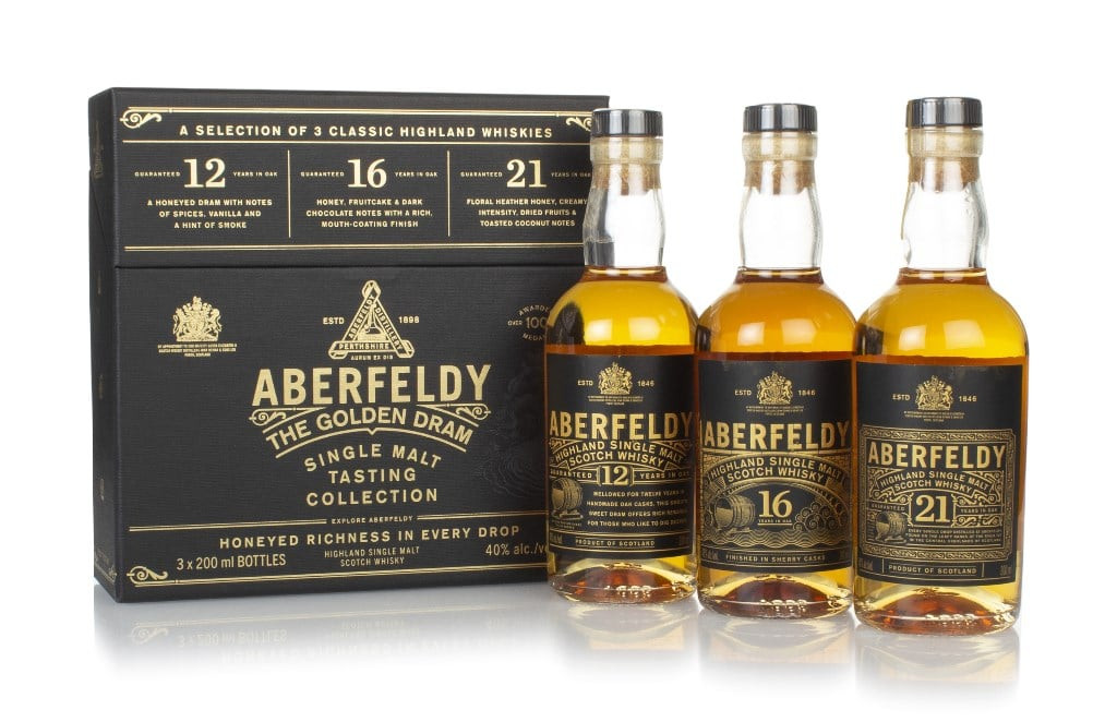 A tasty trio of tipples from the Aberfeldy Distillery! This tasting collection features a 20cl bottle of three different Aberfeldy single malts, including Aberfeldy 12 Year Old, Aberfeldy 16 Year Old, and Aberfeldy 21 Year Old. Explore the range of richly honeyed expression from this fabulous Highland distillery right here!