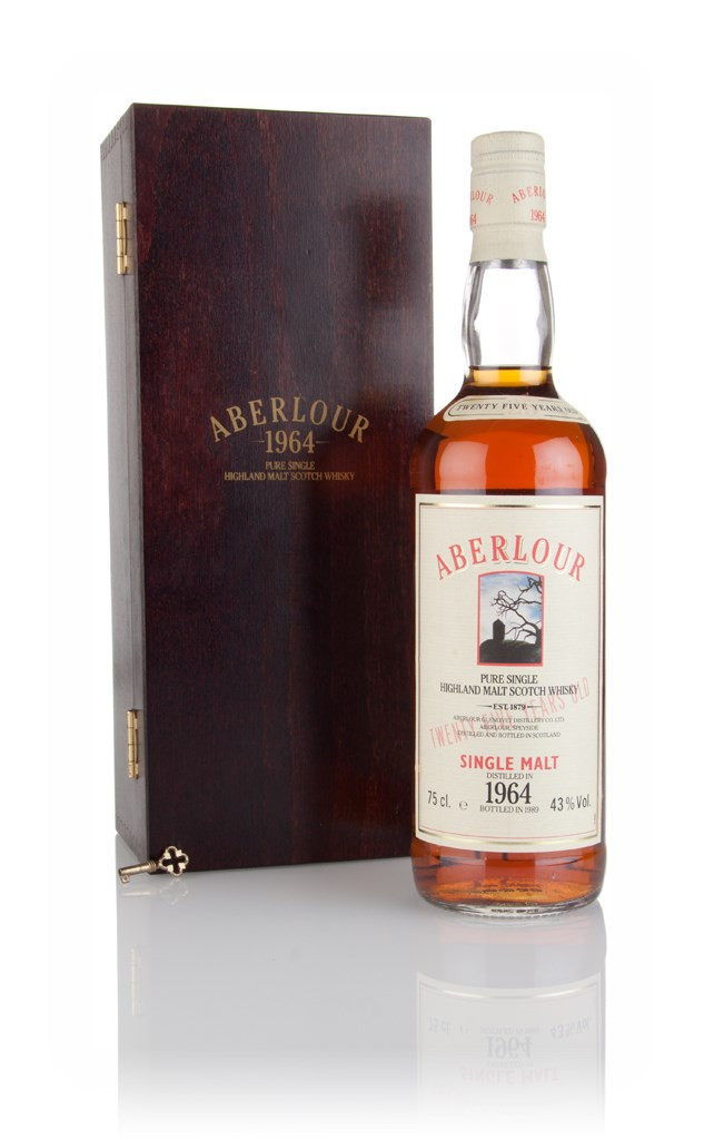 A rare old 75cl bottling of 25 year old Speyside single malt from Aberlour distillery, bottled back in 1989. It comes complete with a wooden presentation box and key.