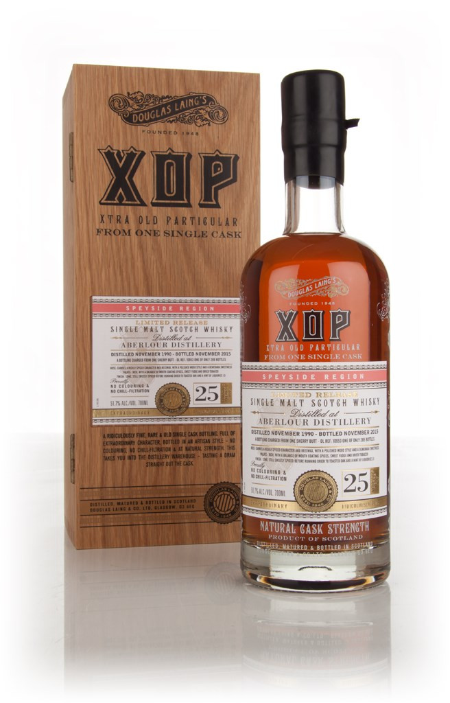 Ooh, an indie Aberlour! Don't see many of these, do you? This was bottled by Douglas Laing for the Xtra Old Particular range, drawn from a single Sherry butt which matured the whisky from November 1990 to November 2015. A release of 289 bottles.