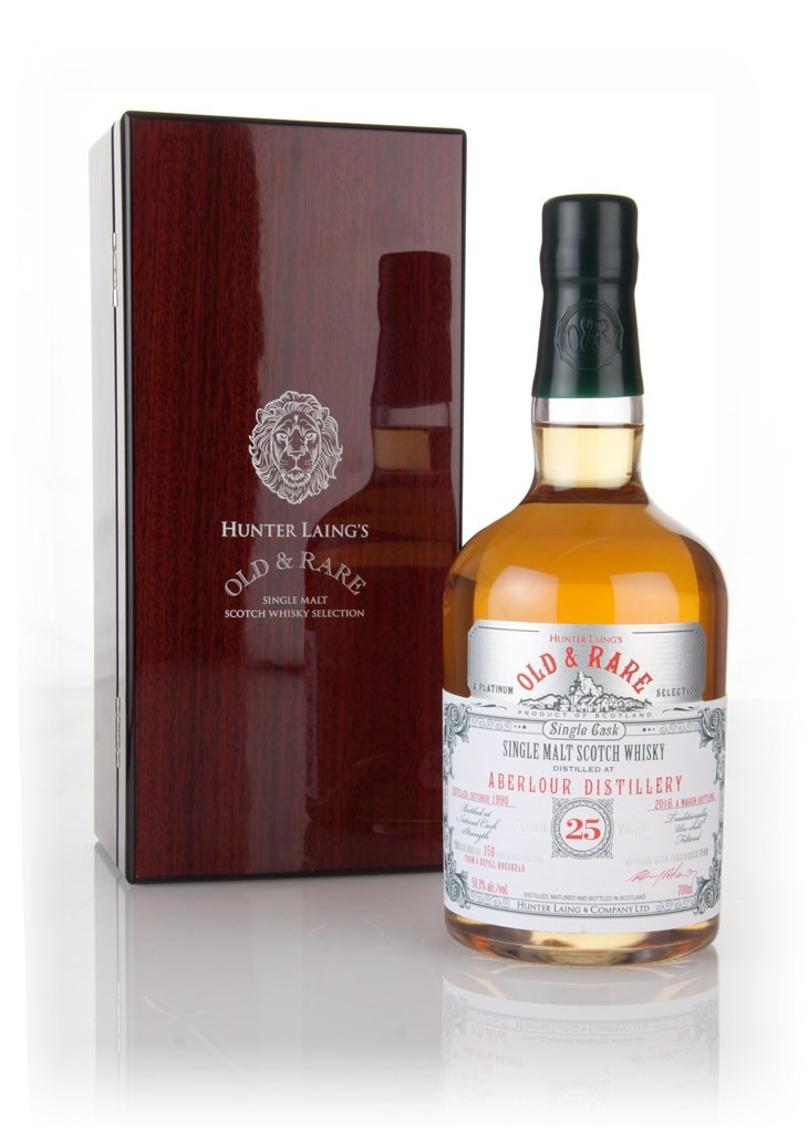 A single cask bottling of Aberlour single malt Scotch whisky, aged for 25 years in a refill hogshead. It was distilled back in October 1990 and left to mature for a quarter of a century until March 2016, when it was bottled by Hunter Laing for their Old & Rare Platinum range. 150 bottles were produced.