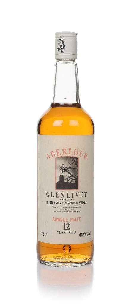 A 1980s bottling of 12 year old Aberlour single malt - or rather, Aberlour-Glenlivet single malt, as the bottle proclaims. Back in the day, distilleries would tag "-Glenlivet" on to the end of their names, and continued to do so for many years afterwards, though the practice has since ceased (mostly).
