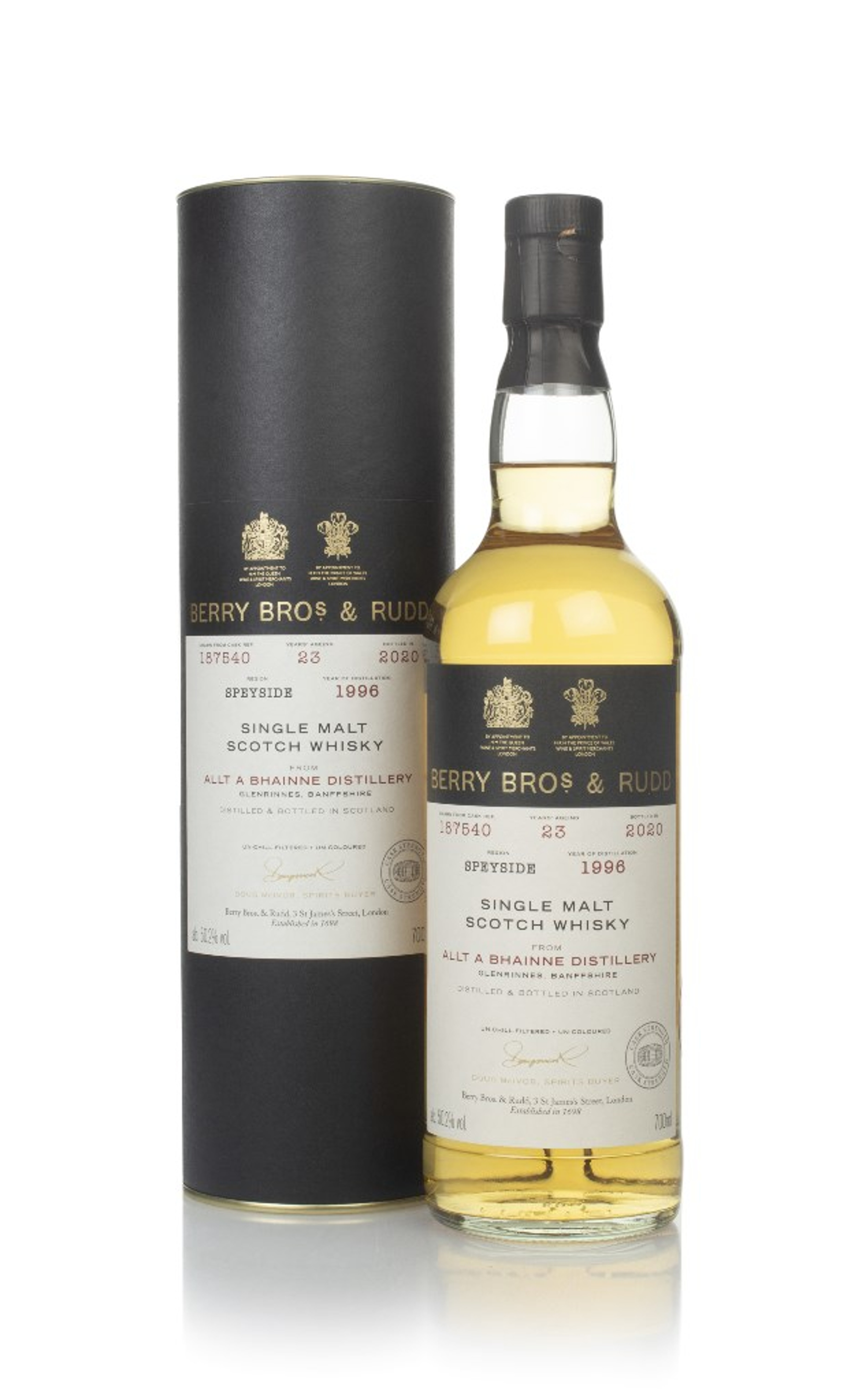 A gloriously buttery single malt from Allt-á-Bhainne over in Speyside. Distilled in 1996, it spent 23 long years in a single bourbon barrel, until it was bottled by Berry Bros. & Rudd at 50.2% ABV.