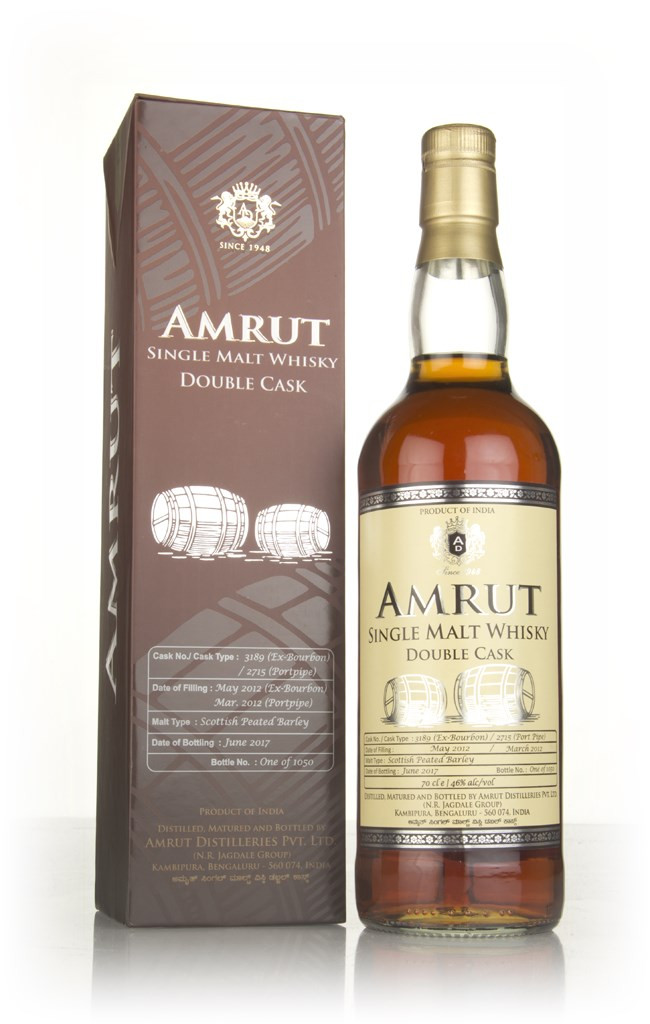 A 2017 release from Amrut's Double Cask Indian single malt range. This time, they've combined whisky aged in a bourbon cask and a Port pipe (previous bottling from their Double cask series have been drawn from bourbon and Sherry casks).