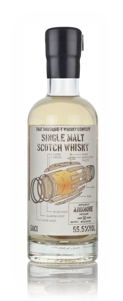 Have you ever wondered what each individual metal ring on a cask was called? What about the bit of wood that goes past the head? What about the piece of fabric that goes in the hole underneath the bung?! Well, the label of That Boutique-y Whisky Company's first batch of 10 year old Ardmore single malt has them all labelled! The metal rings are called Chime, Quarter and Bilge Hoops, the bit of wood that goes past the head is the Chime and the fabric is the Bung Cloth (the one on the label is particularly musty!).
