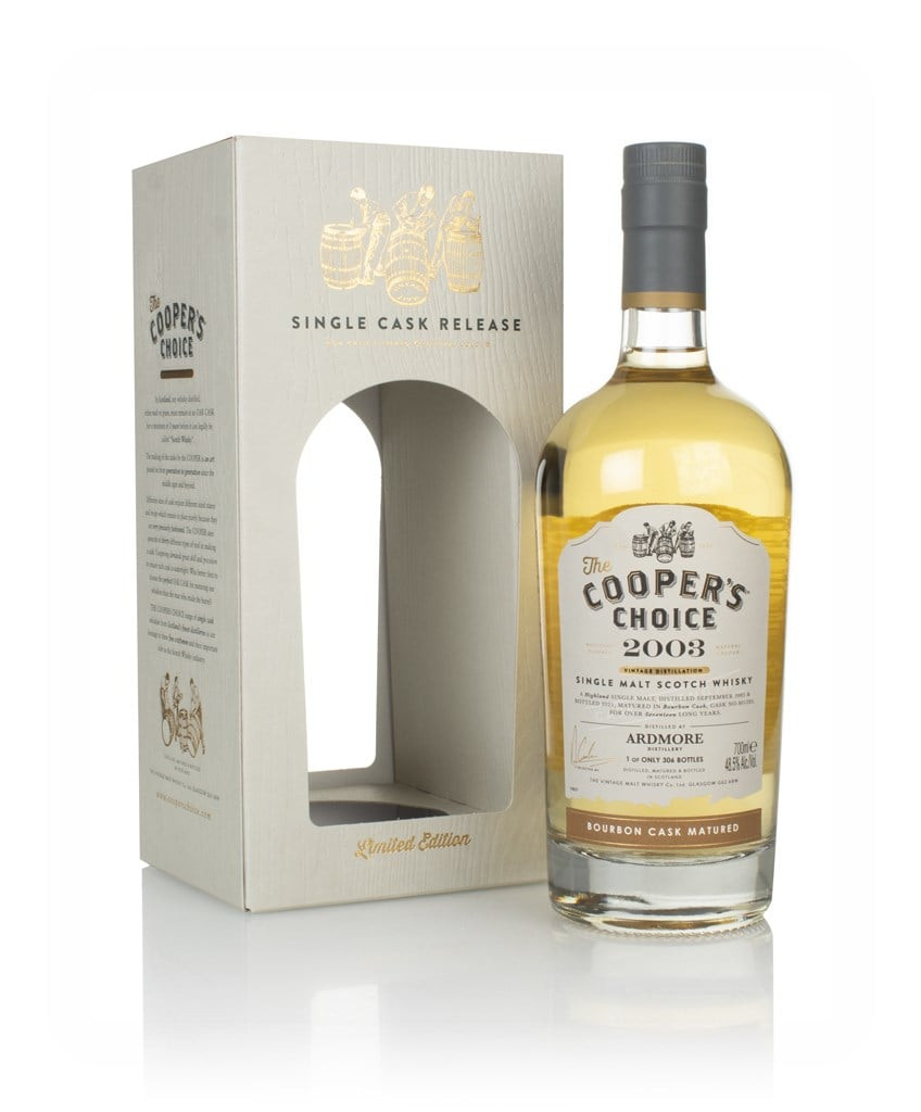 This Ardmore single malt Scotch whisky was independently bottled by The Vintage Malt Whisky Co. as part of The Cooper's Choice collection. Distilled in 2003, this rested for 17 years in a bourbon cask, with an outturn of 306 bottles drawn in 2021.
