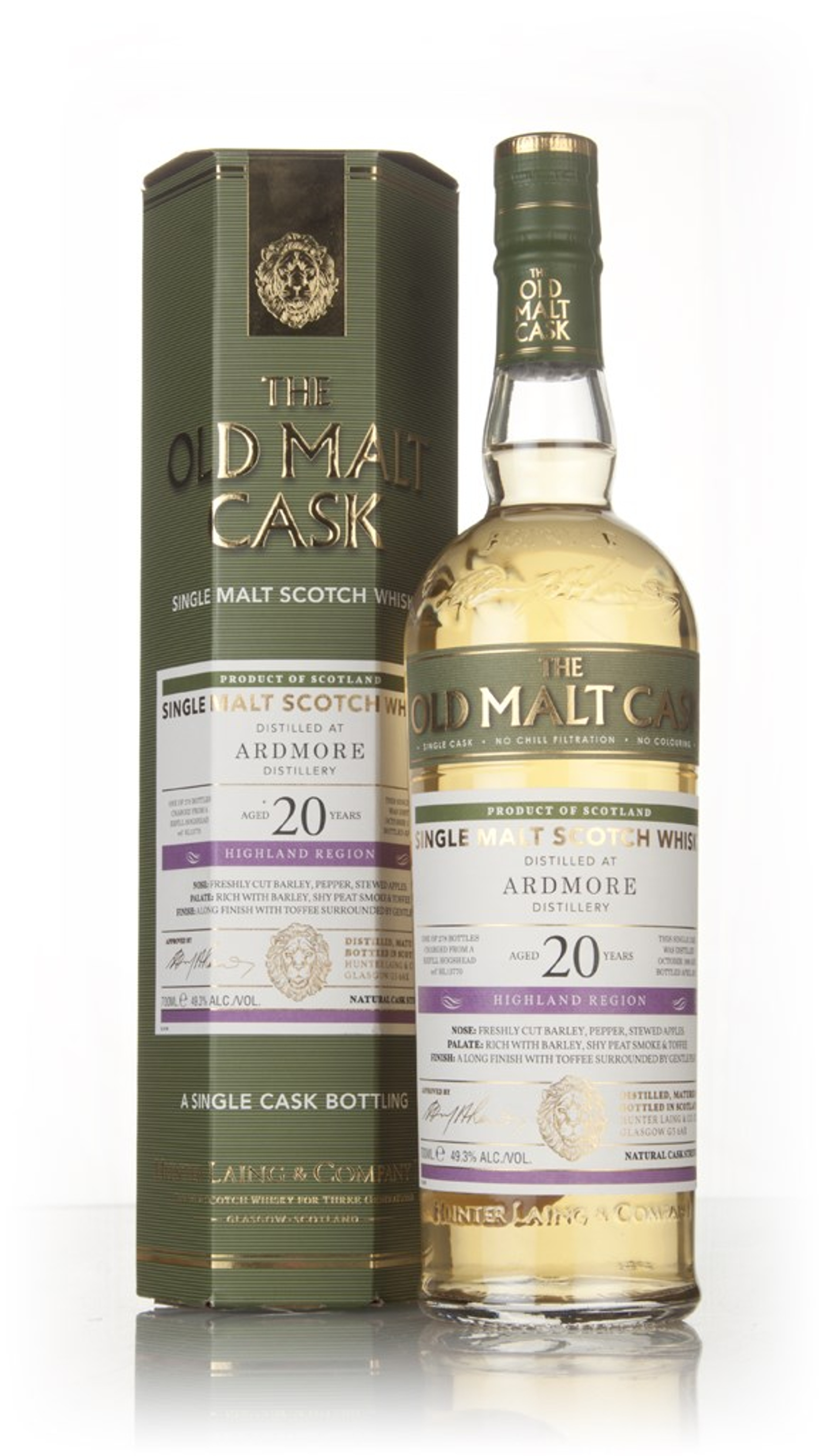 Single cask single malt from the Ardmore distillery, matured for 20 years (between October 1996 and April 2017) in a refill hogshead before being bottled by Hunter Laing for the old Malt Cask series. A release of 278 bottles.