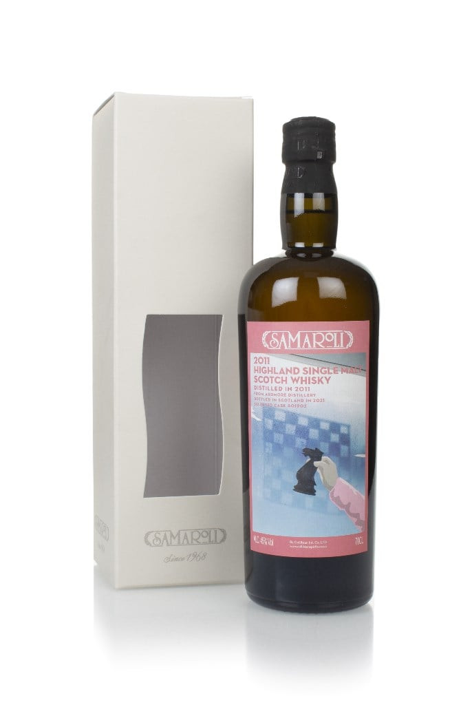 Indie Ardmore here, bottled up by Italy's Samaroli! This expression was distilled in 2011 and left to age in cask #801902, before eventually being bottled up in 2021 at 45% ABV. It's got a chess-themed label, featuring specifically the horse piece which moves in an awkward way. Never was a big fan of that one. Always preferred the castle.