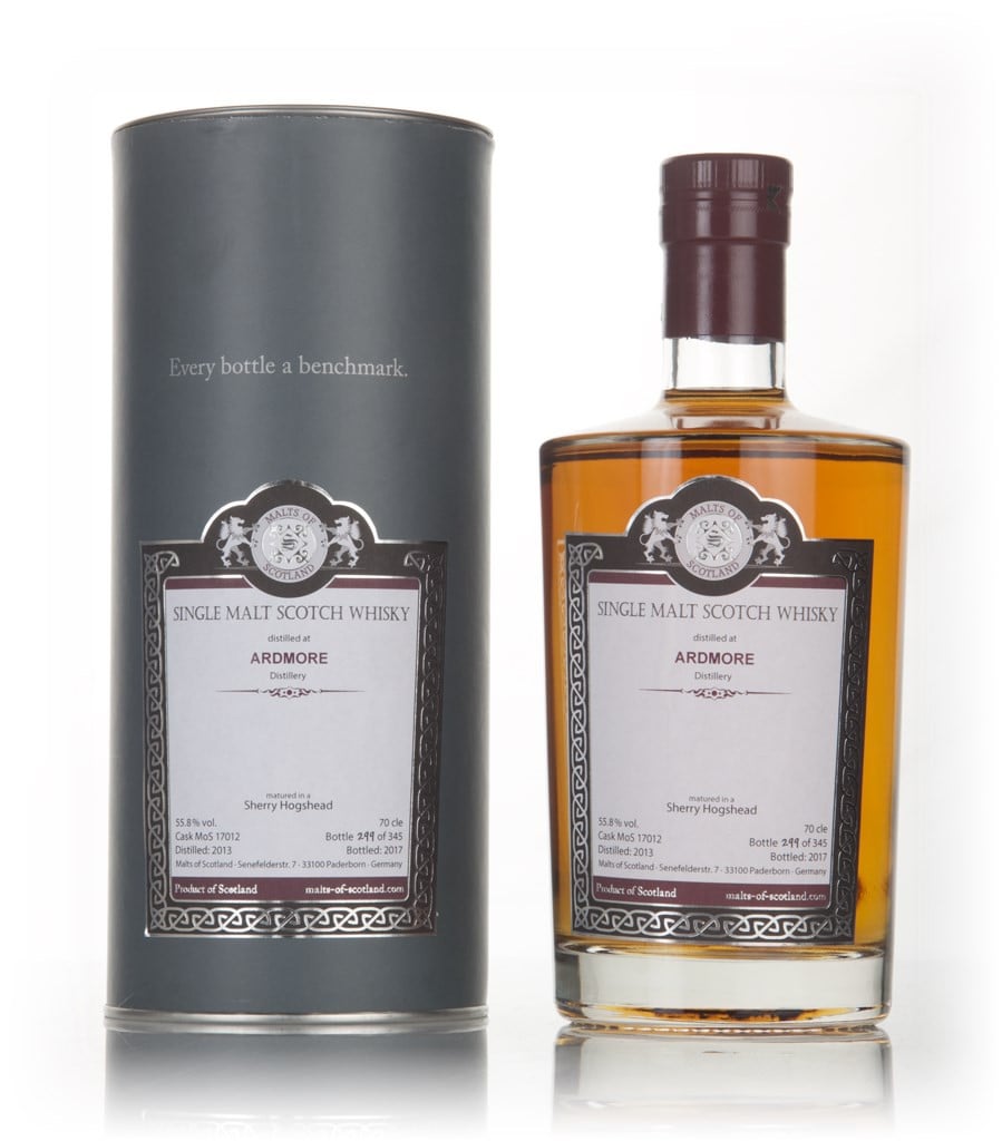 Single cask Ardmore, matured in a Sherry hogshead from 2013 to 2017. Following that, it was independently bottled by Malts of Scotland with an outturn of 345 bottles. A rather young though still delicious single malt Ardmore.