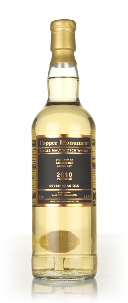 One of two bottlings of 7 year old Ardmore single malt from Copper Monument. This one was drawn from refill barrel #803521, where it slumbered from 2010 to 2017 before being bottled at cask strength.