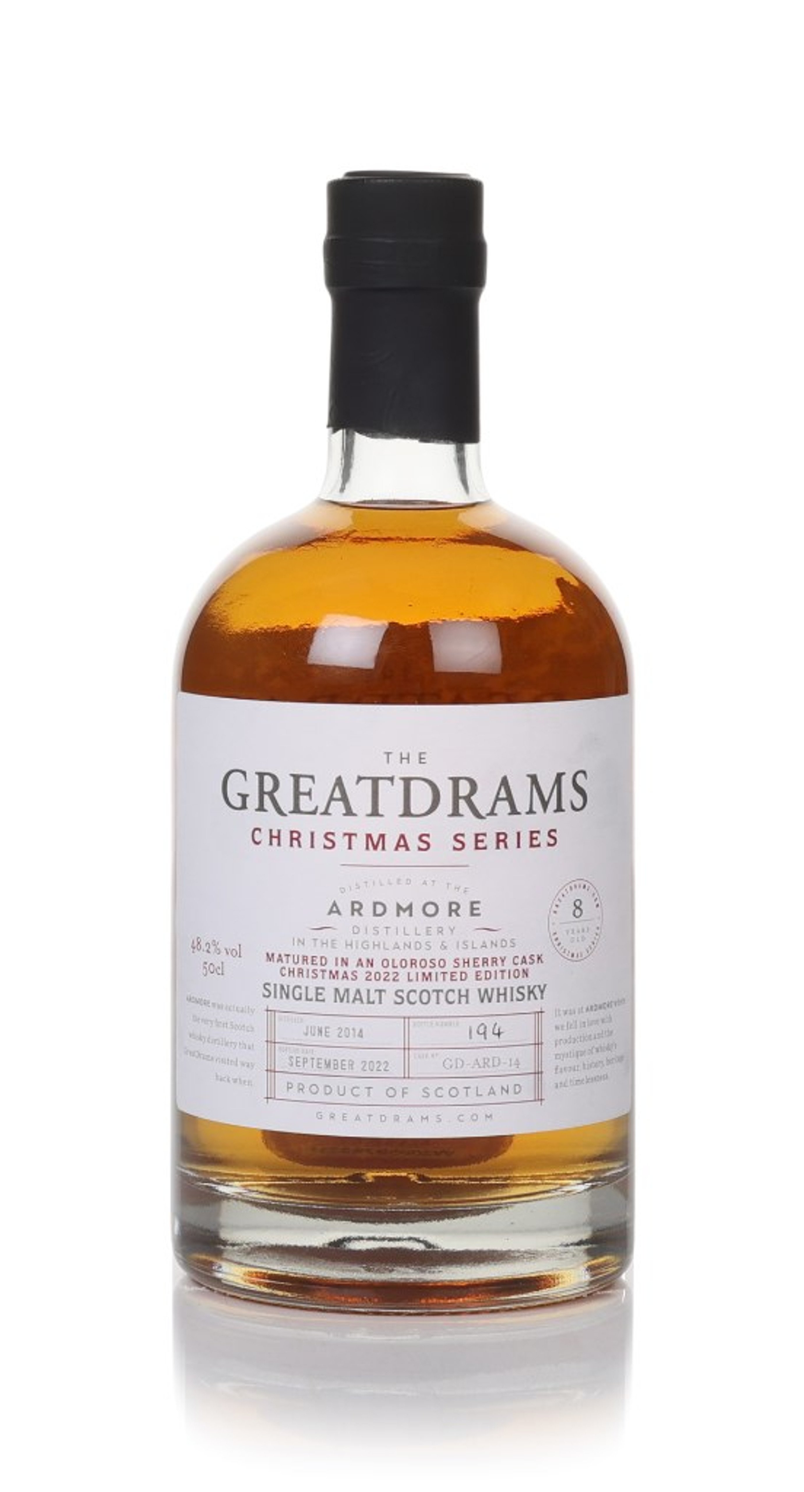 An indie bottling of Ardmore single malt from GreatDrams, released for its beloved Christmas series! Distilled in 2014, it spent eight years in a single oloroso sherry cask before being bottled in October 2022. Just 200 bottles were released at 48.2% ABV, suitably full of festive flavours thanks to the sherry cask.