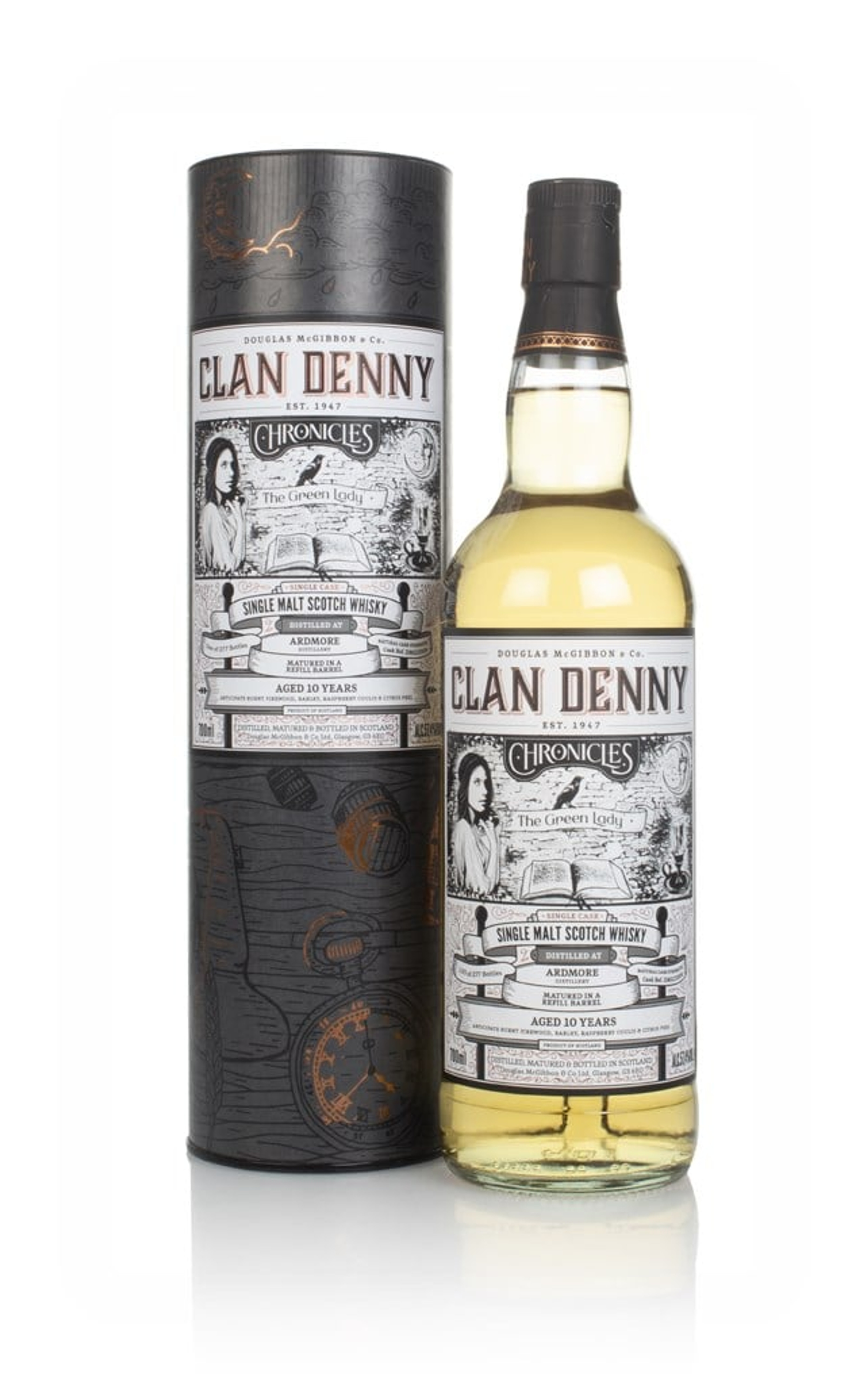 The first release in Douglas Laing's Clan Denny Chronicles series! This is a 10 year old Ardmore single malt, matured in a single refill barrel from July 2009 to July 2020, before being bottled up at 57.4% ABV. 277 bottles were release, with labels that references The Green Lady of Crathes Castle, a ghost story from the nearby 16th Century castle. Spooky stuff. The story, that is. The whisky isn't spooky. It's tasty.