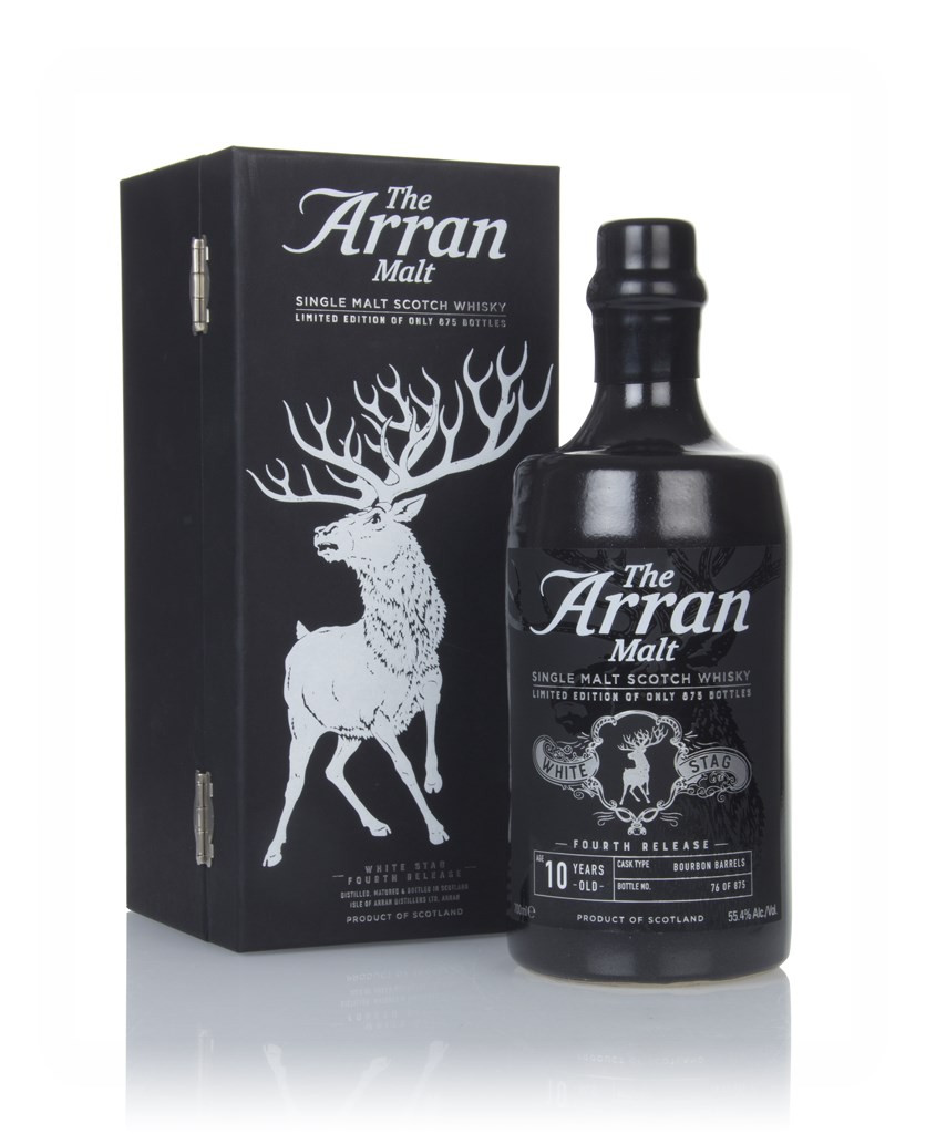 This right here is the fourth bottling in the Arran distillery's White Stag series! For this edition, the distillers on the eponymous island specially picked out four bourbon barrels that were set down in 2008 and bottled the whisky up after 10 years of maturation. A release of 875 bottles were produced.