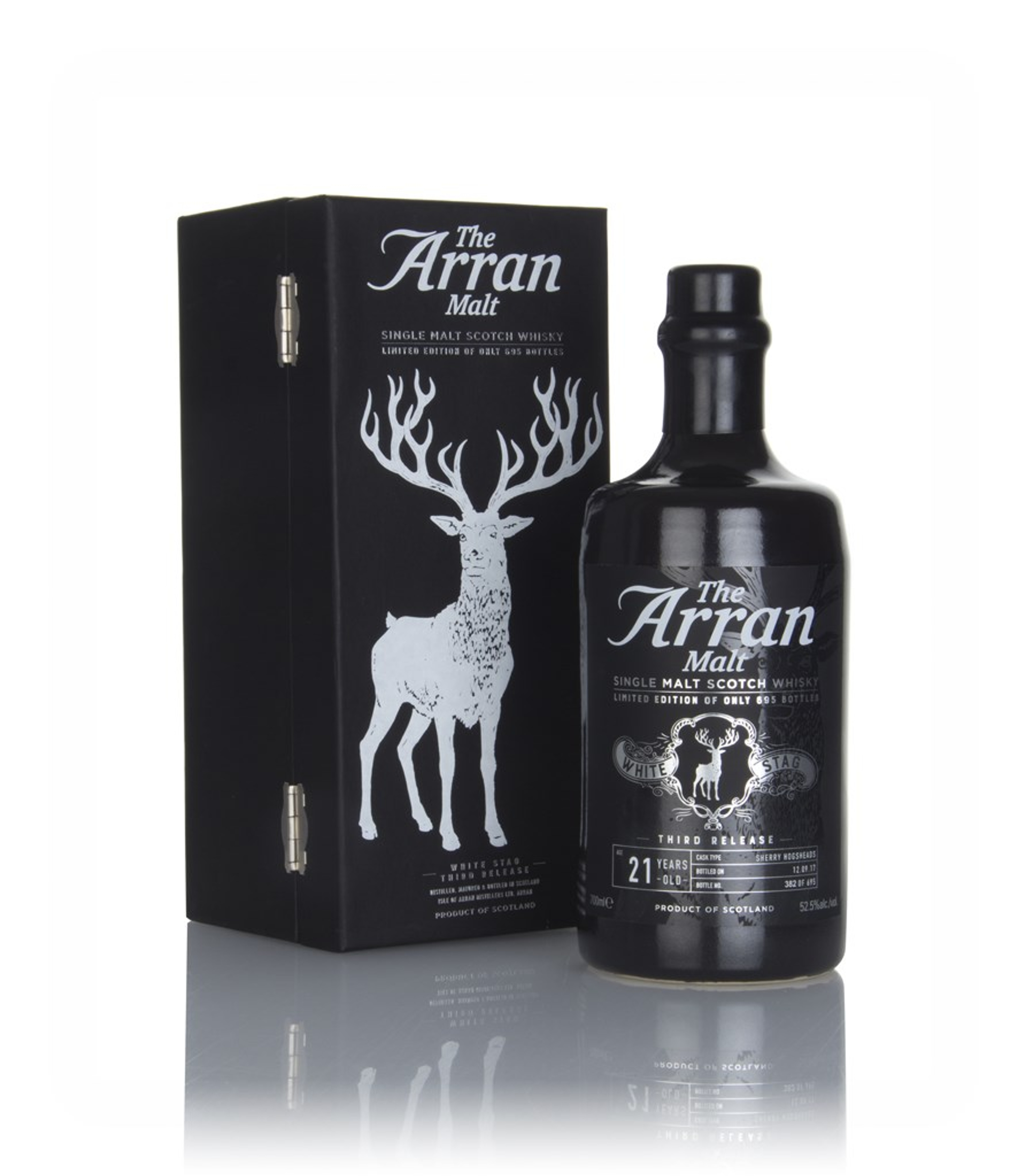 The third release in Arran's White Stag series is a 21 year old single malt drawn from a pair of sherry hogsheads. It was bottled in September 2017 with an outturn of 695, all adorned with a rather distracted-looking stag. Maybe it's seen some tasty berries somewhere...?