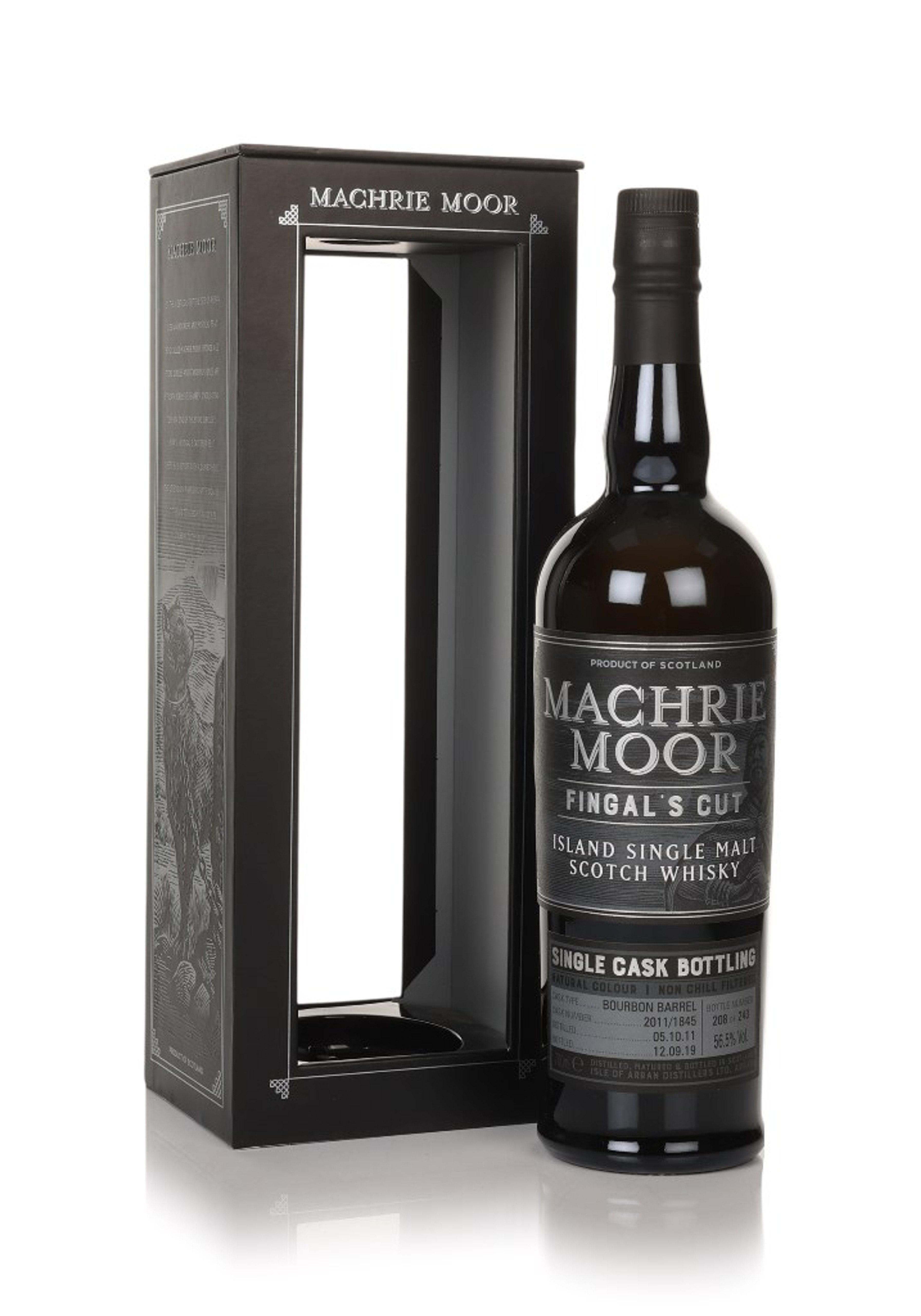 A single cask bottling of Arran's peated Machrie Moor single malt, distilled in October 2011 and matured in a bourbon barrel until September 2019. A release of 243 bottles.