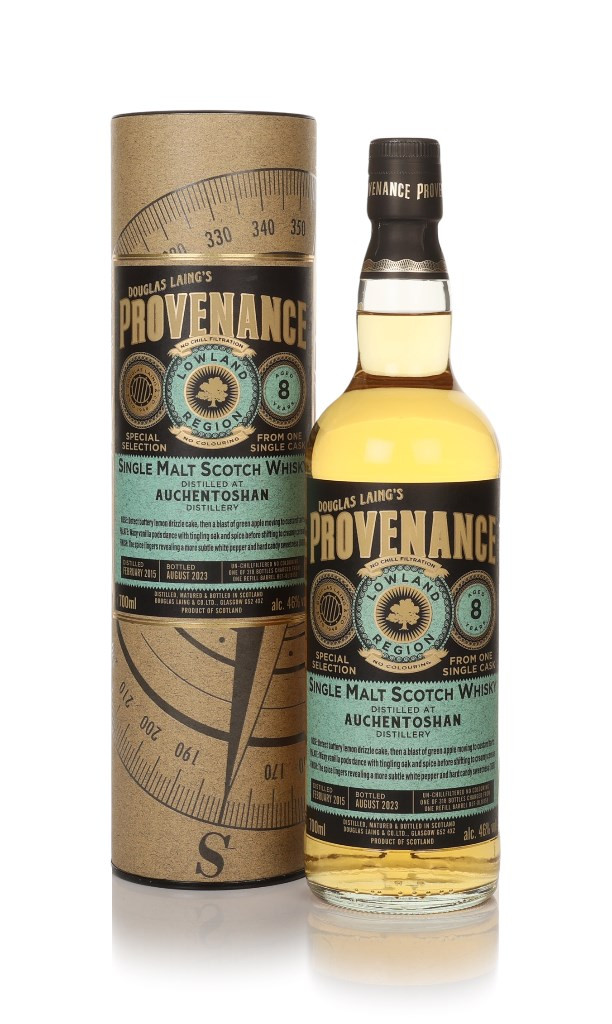 Eight-year-old single malt from Auchentonshan, distilled in 2015 and matured in a single barrel until 2023. That barrel was opened up by indie bottler Douglas Laing, releasing a total of 318 bottles for the Provenance collection.