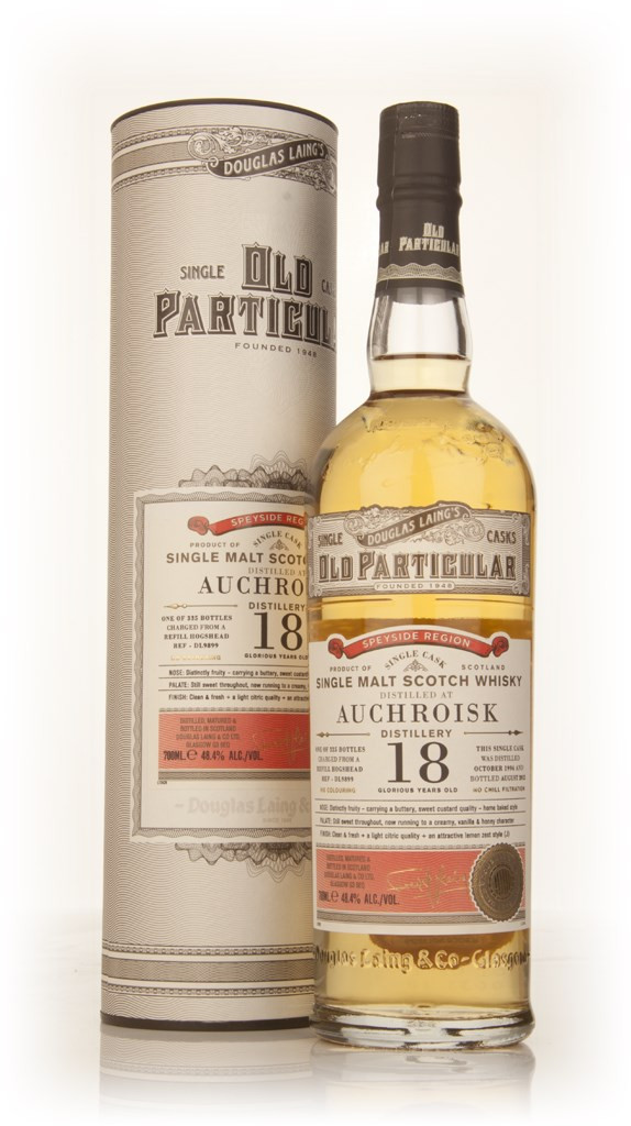 This Auchroisk was distilled in October 1994, popped into a refill hogshead where it matured for 18 years, until Douglas Laing put the single malt Scotch whisky into 335 bottles during August 2013 for their Old Particular range.