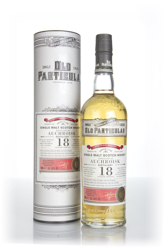 An 18 year old Auchroisk single malt, independently bottled by those ace folks from Douglas Laing. This whisky was drawn from a single refill hogshead which was laid down in August 2000 and cracked open in September 2018. 297 bottles were produced.
