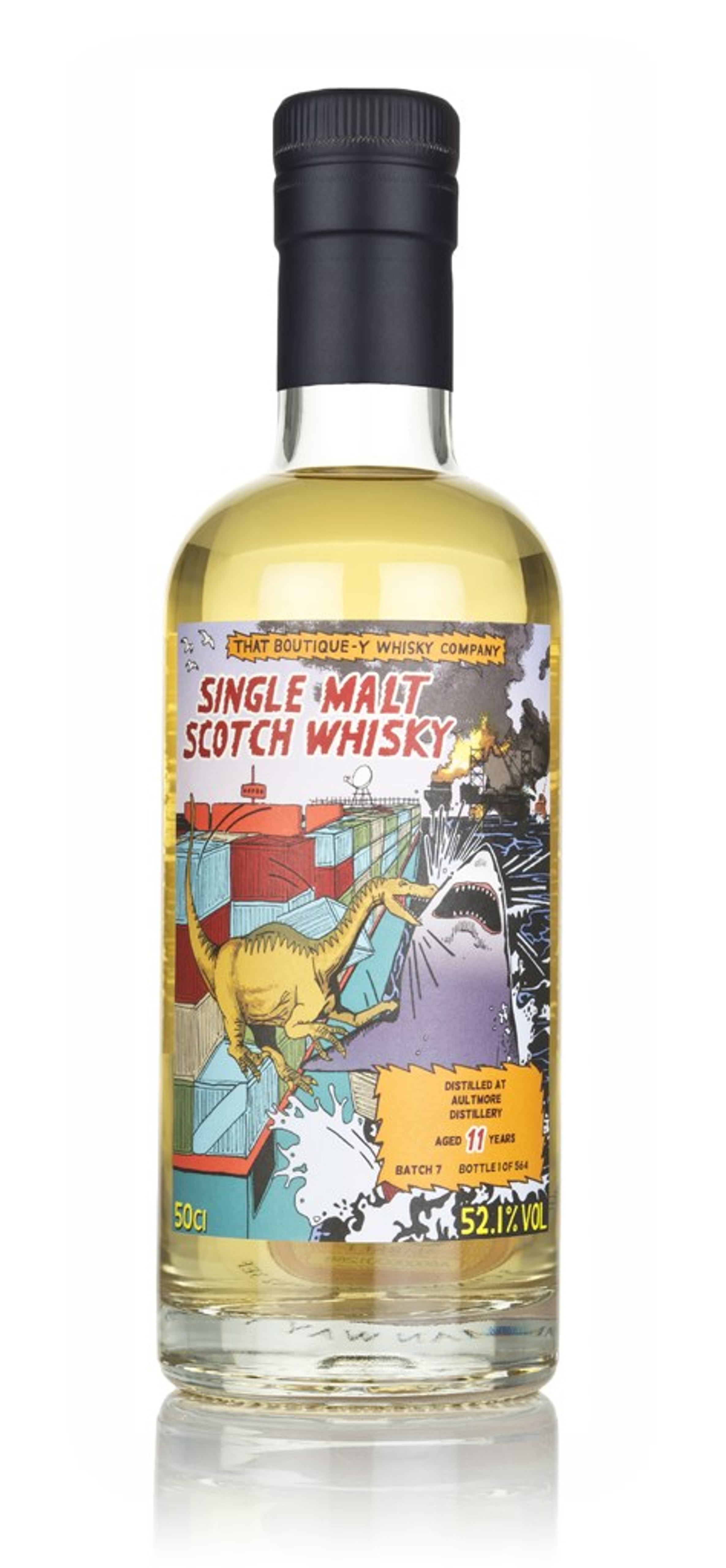 11 year old single malt from Aultmore, independently bottled by That Boutique-y Whisky Company! The label of this whisky teaches us a valuable lesson about the animal kingdom - if you see a shark fighting a velociraptor, leave that location immediately, as nearby oil rigs are prone to exploding from the ferocity. Take care out there, folks.