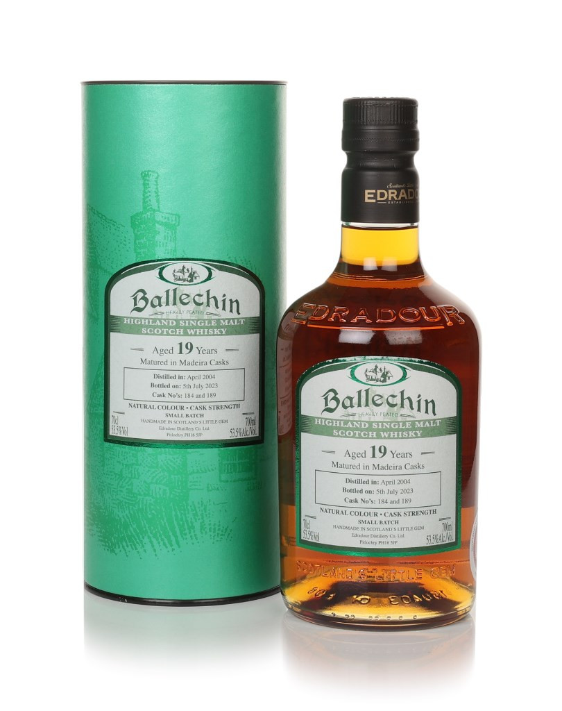 From Edradour's peated range, Ballechin, comes a Highland single malt Scotch whisky distilled back in 2004 and then matured in two Madeira wine puncheons (#184 and #189) before it was bottled in July 2023 with an outturn of 1,323 bottles.
