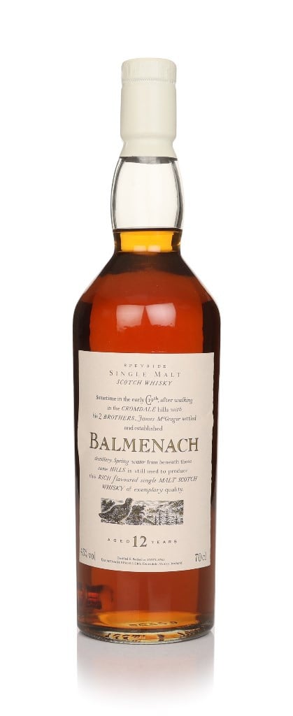 You don't see many of these around anymore. From the classic Flora and Fauna series, this 12-year-old single malt is from the Balmenach distillery. An especially rare find due to its white cap.