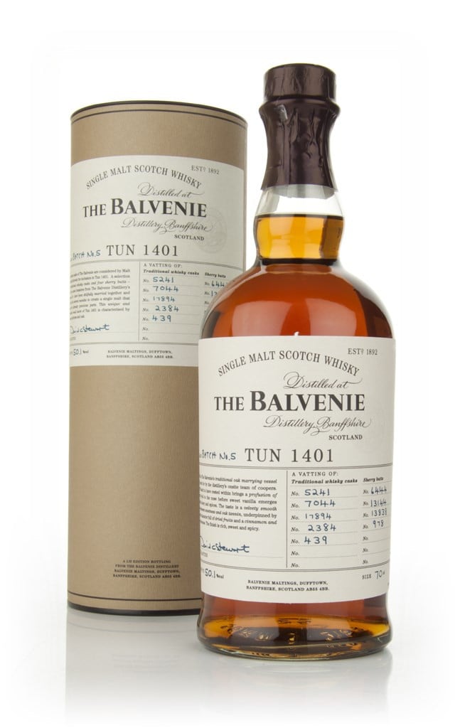 The Balvenie Tun 1401 is the almighty plaything of the distillery's malt masters, and this single malt was created under the watchful eye of esteemed former malt master David Stewart. The Balvenie Tun 1401 is a vat, which, for the uninitiated, is like a barrel on steroids... or imagine the Incredible Hulk as a bucket. In this monolithic cask, this wizard of whisky concocted his most lavish expressions of the Balvenie Single Malt. Some say self-indulgent, others say genius; however, we can all agree that the finished product is always wondrous to behold.