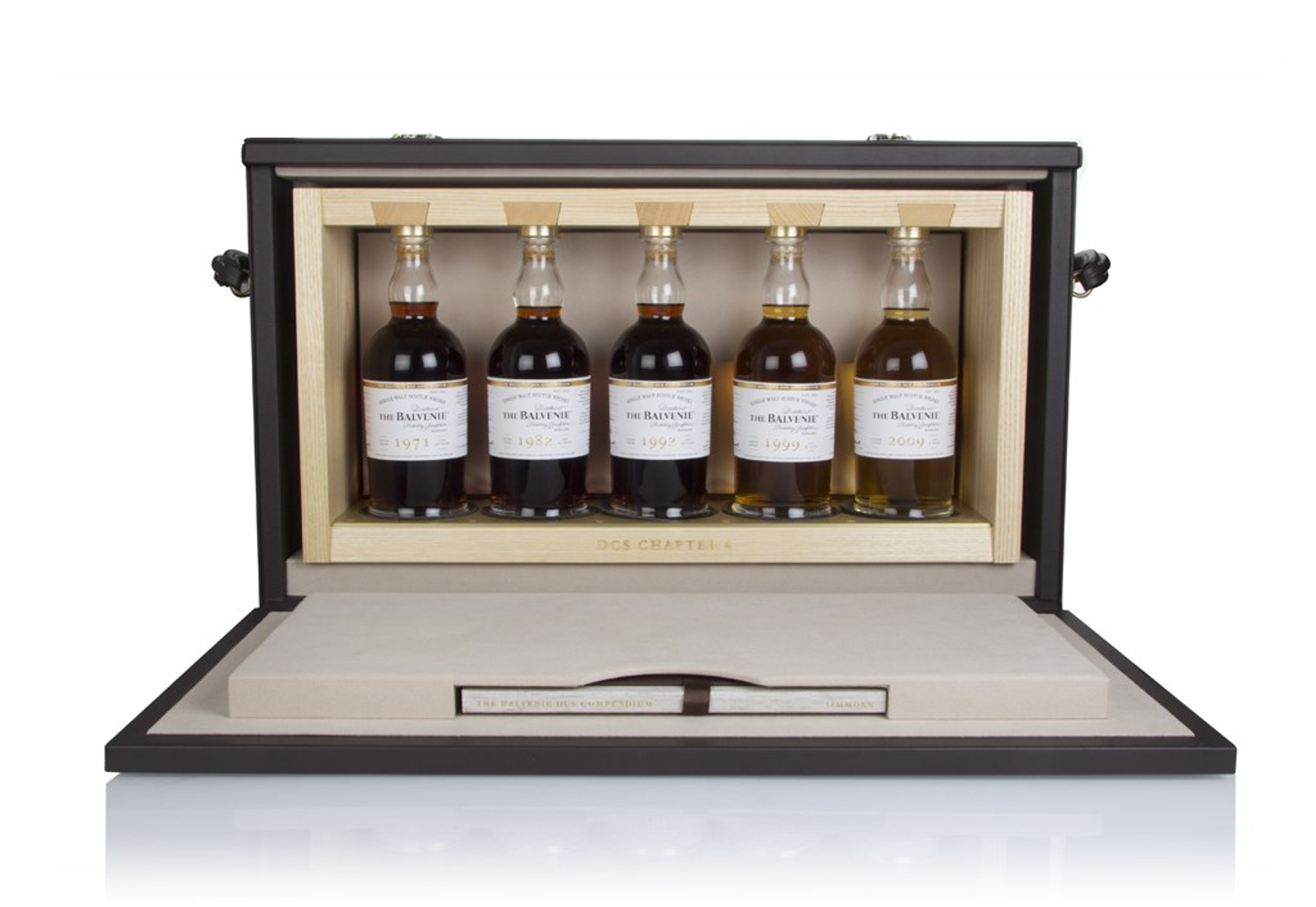 The fourth chapter of Balvenie's DCS Compendium is titled 'Expecting the Unexpected', though you can expect deliciousness aplenty. A lot of deliciousness, considering you can get your hands on each bottle from this chapter within one handsome case. That's right, all five bottles of extraordinary Speyside single malt from Balvenie's DCS Compendium Chapter Four are here, including a whisky aged for 47 years! Outstanding stuff once again from Balvenie.