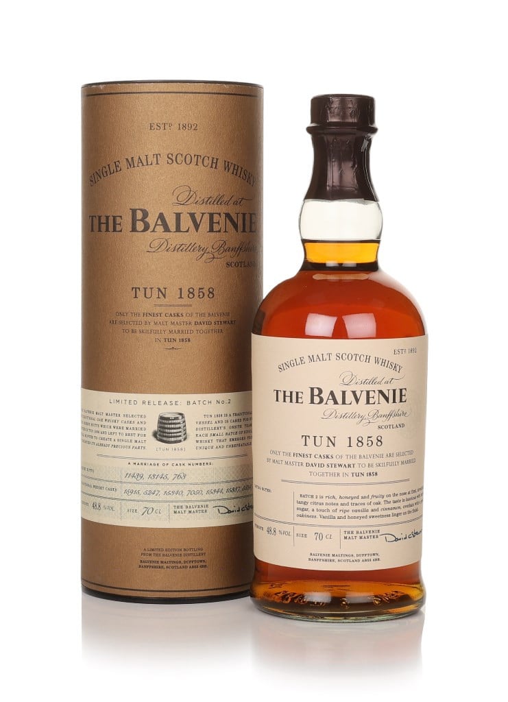 Released as a limited edition for the Taiwanese market, batch two of The Balvenie Tun 1858 combines three sherry butts and nine whisky casks, hand selected by malt master David Stewart, and married in Tun 1858 before bottling.