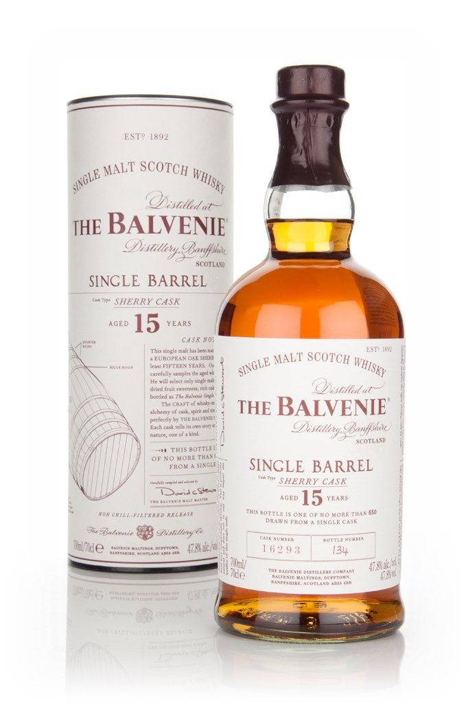 Unveiled in 2014, the 15 Year Old Single Barrel Sherry Cask is a wonderful sight from Balvenie - single malt Scotch whisky fully matured in Sherry casks. These are released in batches of no larger than 800 bottles from a single cask, each one being hand numbered. Although no two casks are the same, and therefore won't produce an identical single malt, the casks are carefully selected by Balvenie's Malt Master and feature a consistent, rich, spiced character, complimented by hints of elegant oak.