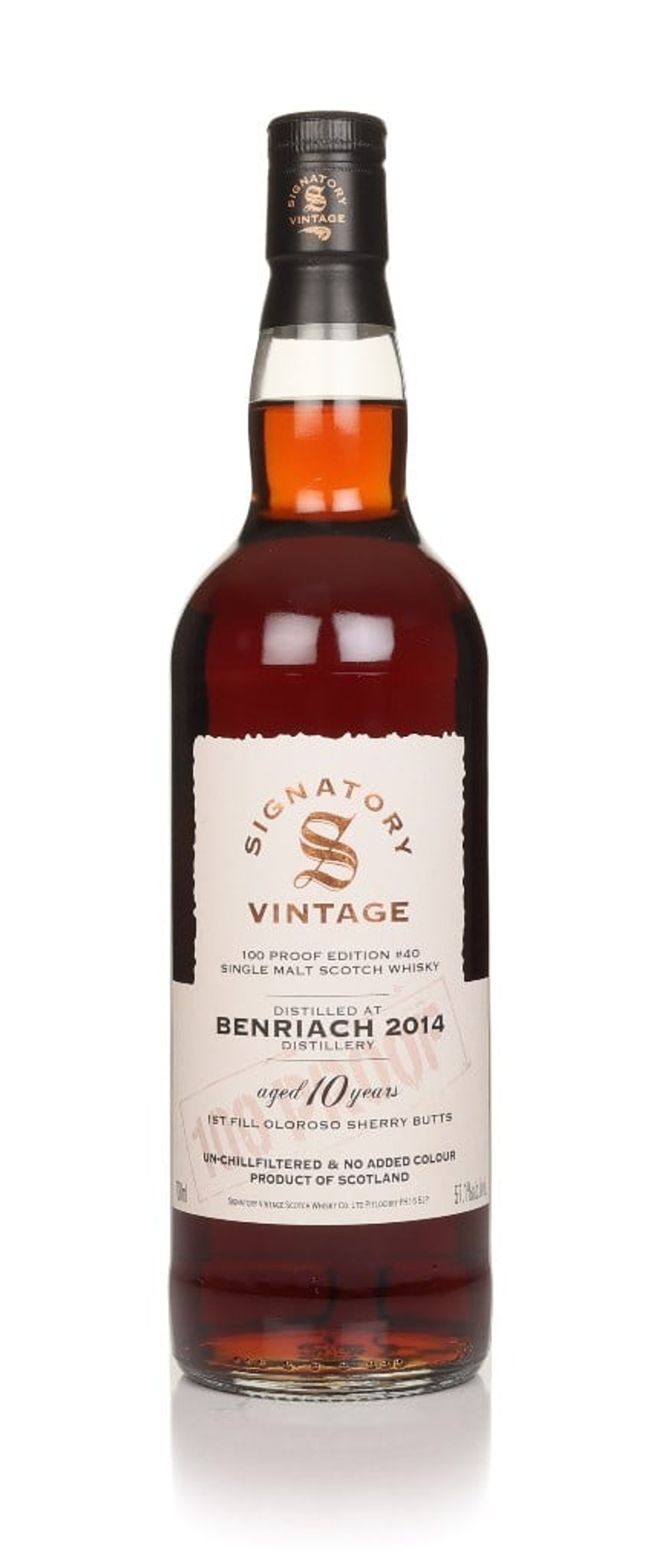 A sherry lover’s dream dram. This 10-year-old Speysider from Benriach has spent its life in first-fill oloroso butts, coaxing out rich layers of dried fruit and spice. Bottled at a hefty 57.1%, it’s part of Signatory’s revered 100 Proof range and absolutely demands attention.