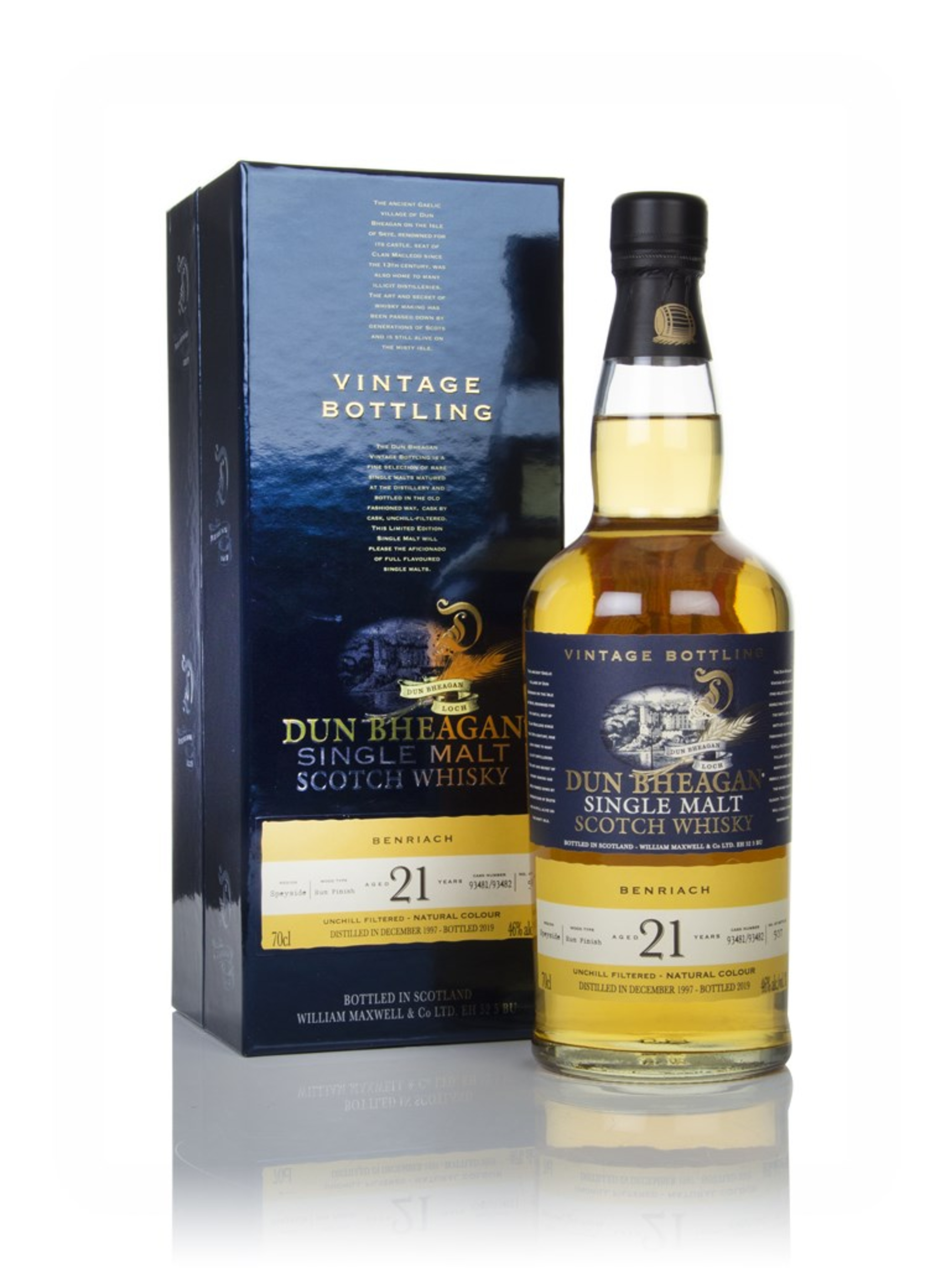 21 year old single malt from BenRiach, independently bottled by Ian Macleod for the Dun Bheagan. It was distilled in December 1997 and bottled in 2019 following a finishing period in rum casks. A small release of only 507 bottles.