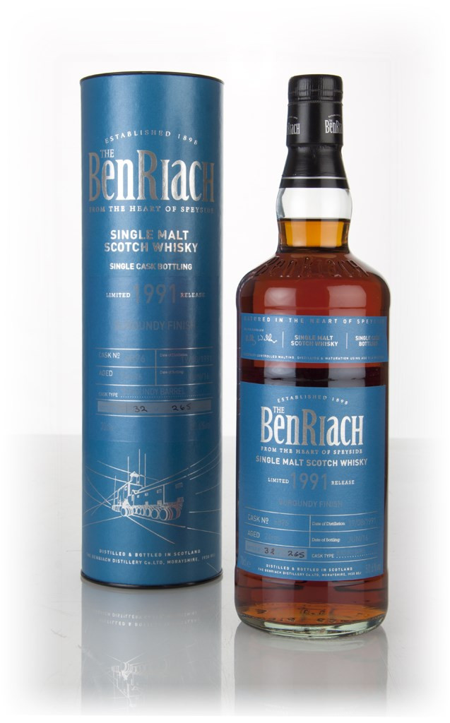 This is a single cask bottling of BenRiach single malt Scotch whisky, finished in a barrel which previous held Burgundy wine. It was distilled in August 1991 and bottled in June 2016 with an outturn of 265 bottles. It was released as part of BenRiach's 13th batch of single cask bottlings.