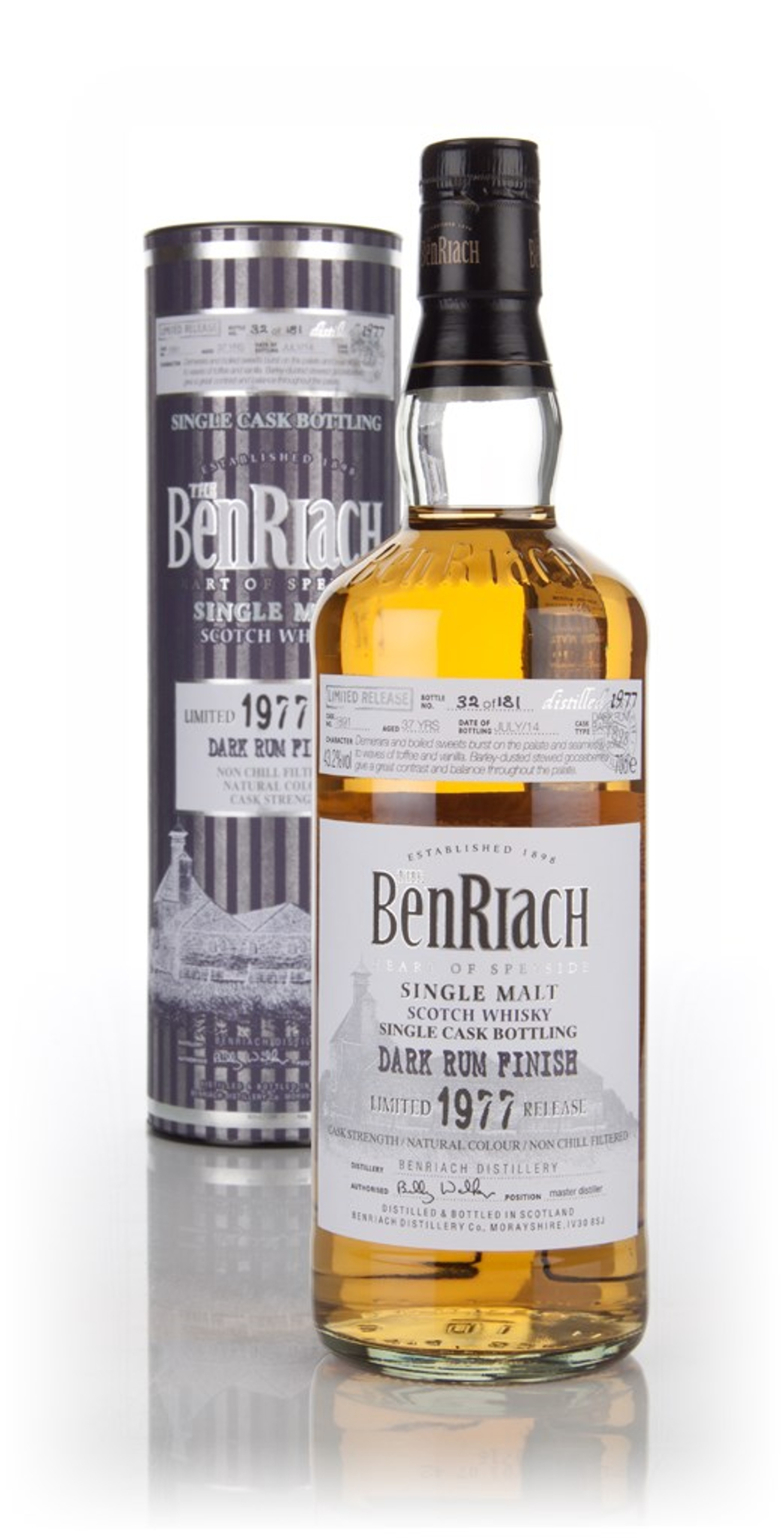 Ooh, a rum cask-finished single malt Scotch whisky from BenRiach! And a 37 year old one at that! How very exciting indeed. This was distilled in 1977 and bottled after its rum cask finish, in July 2014 for the distillery's 11th batch of single cask releases. Only 181 bottles were produced.