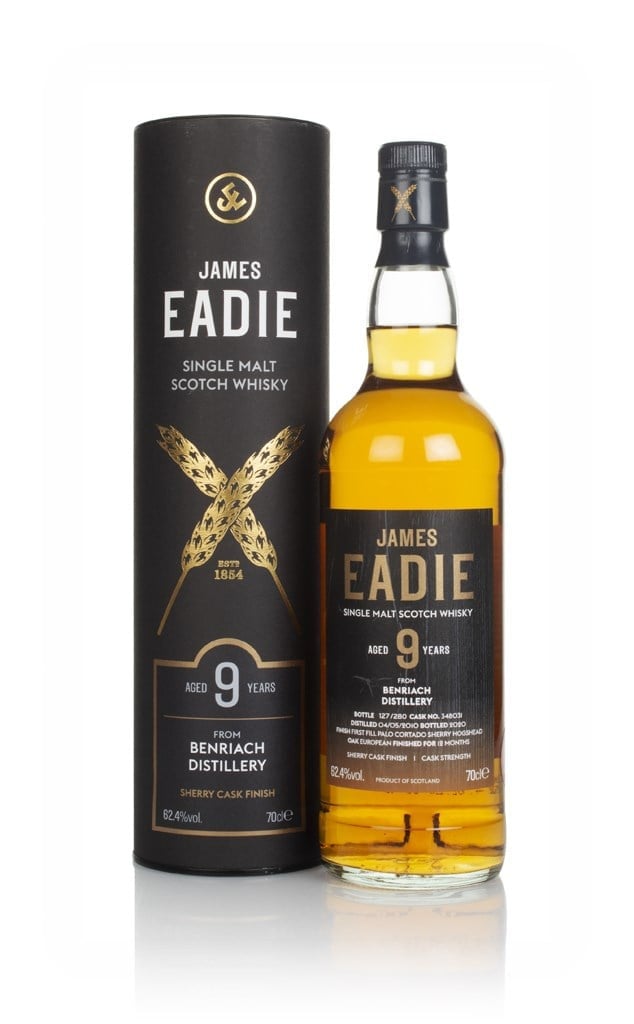 A rather unusual cask finished Benriach here! The single malt was distilled in Speyside in May 2010, was of its nine years of maturation, 12 months of it was spent finishing in a single first-fill Palo Cortado sherry hogshead. It was bottled by James Eadie in 2020, with an outturn of 280 cask strength bottles at 62.4% ABV.