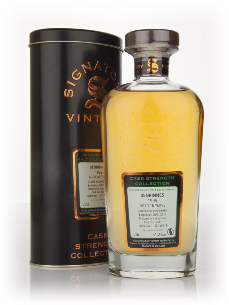 This was distilled on the 6th June 1995 at the Benrinnes distillery. It was then matured in hogshead 5885 for 16 years before bottling on the 6th January 2012 by Signatory. A release of 313 numbered bottles.